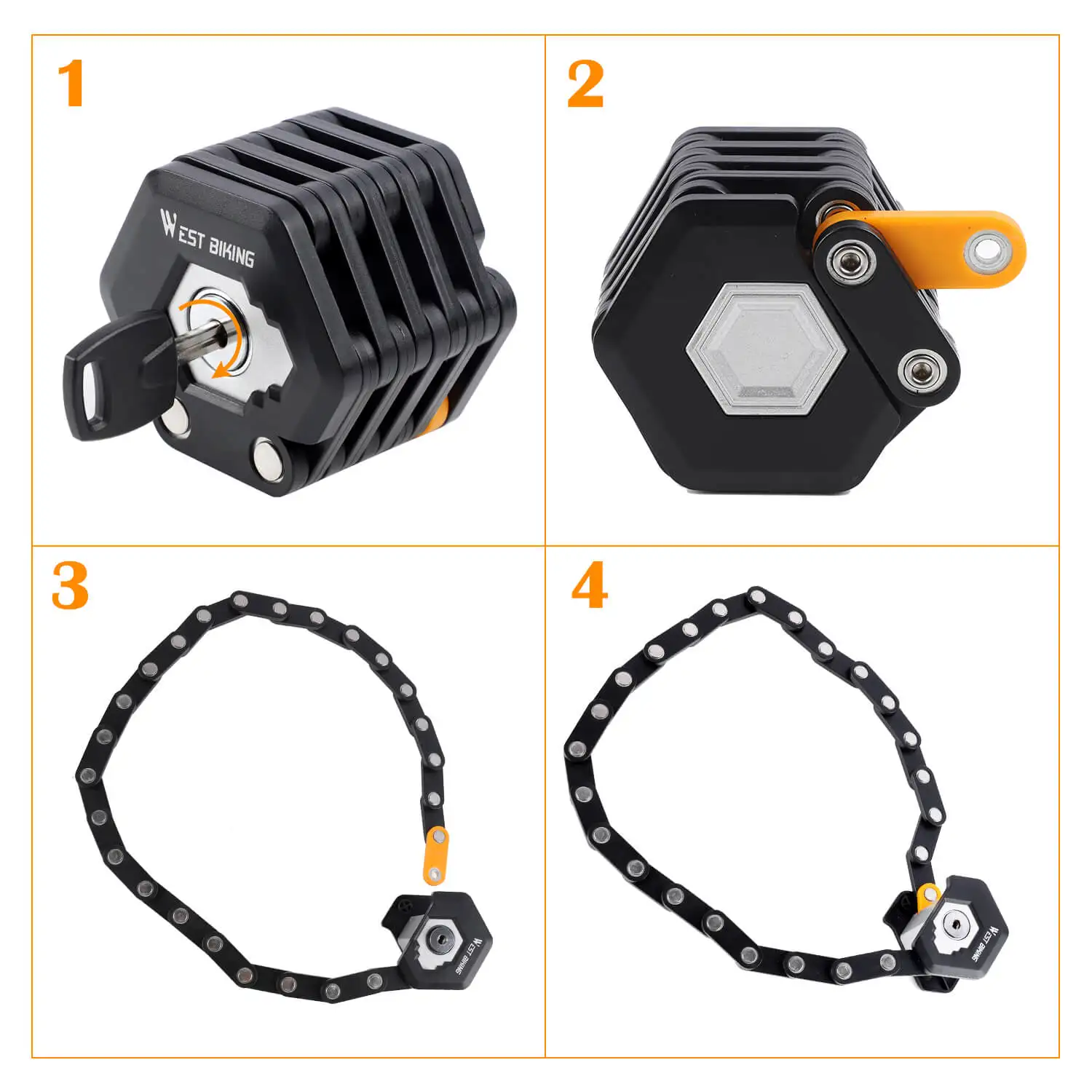 Складной велосипедный замок, замок с замком на цепочке для горных велосипедов, 26 узлов, защита от кражи, для электрических скутеров и велосипедов