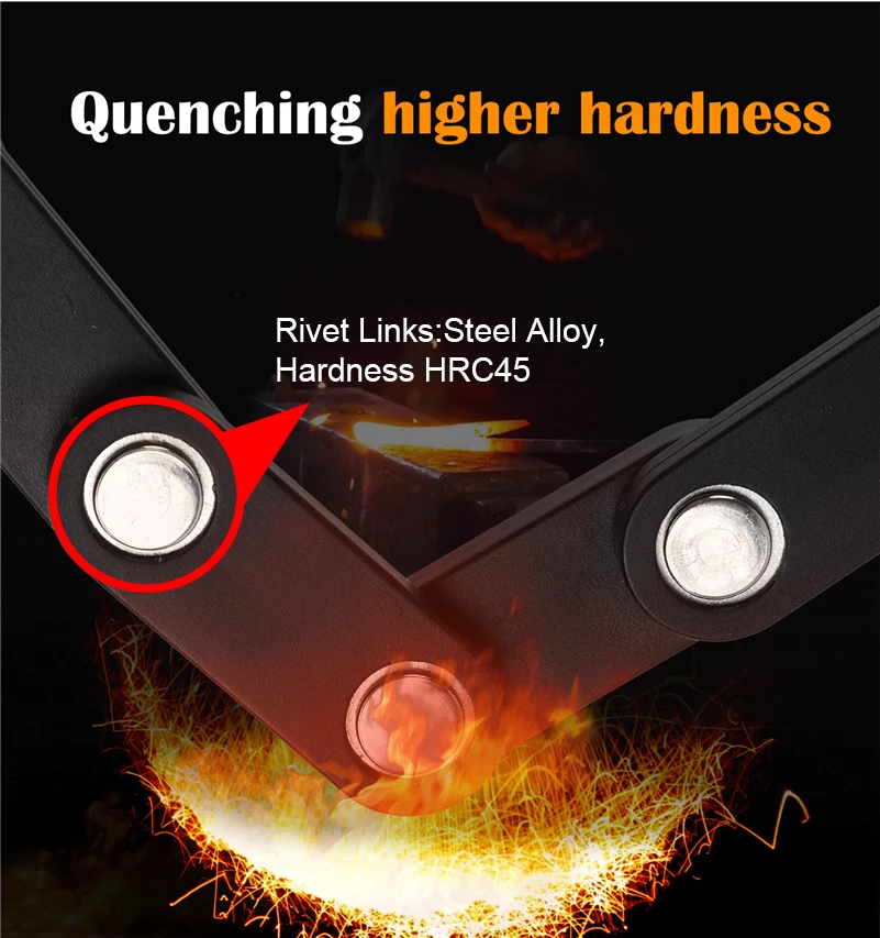 Технические параметрыДлина: 78 смВ сложенном виде Размеры: 7,5*6,6*5,5 смМатериал: цинковый сплав + легированная сталь + АБС-пластик + пластик PA6 + Медь 59Количество деталей цепи: 26 шт., один размер: 16 мм * 45 мм, с использованием местной технологии термообработки, твердость снаружи HRC45, внутренний HRC10-HRC25Ядро замка: ядро блокировки страницыЗапорная втулка: цинковый сплав + легированная сталь (Твердость термообработки снаружи HRC45)Ключ: PA6 пластик + 59 медьОписание характеристики:Новый дизайн внешнего вида, дизайн с легким весом, малый размер, длина разработки, простота в использовании и другие аспекты дизайна этого очень практичного замка.