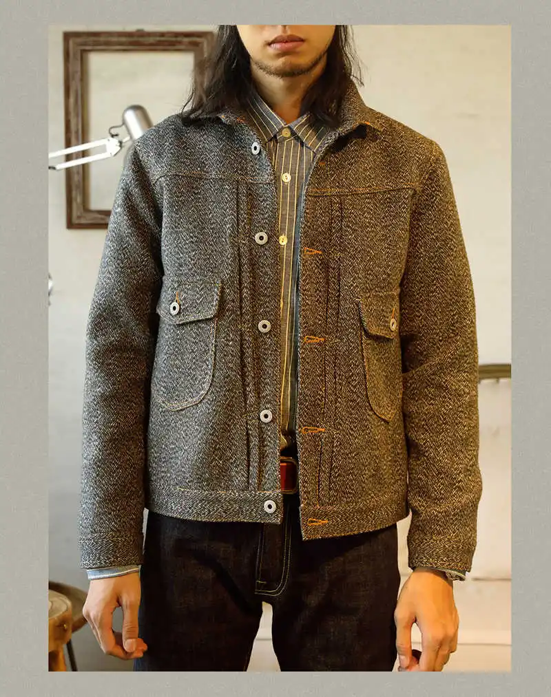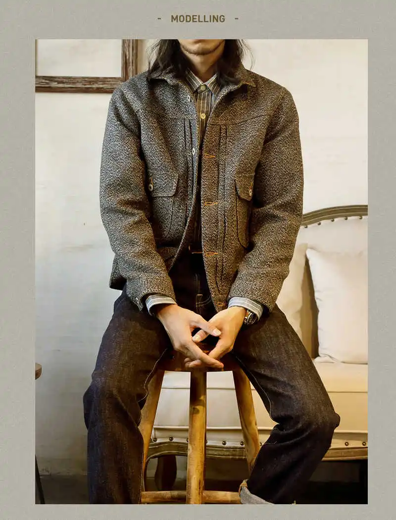 Красный Торнадо соль и перец шерстяная куртка винтажная рабочая одежда Стиль Мужчины твидовое пальто