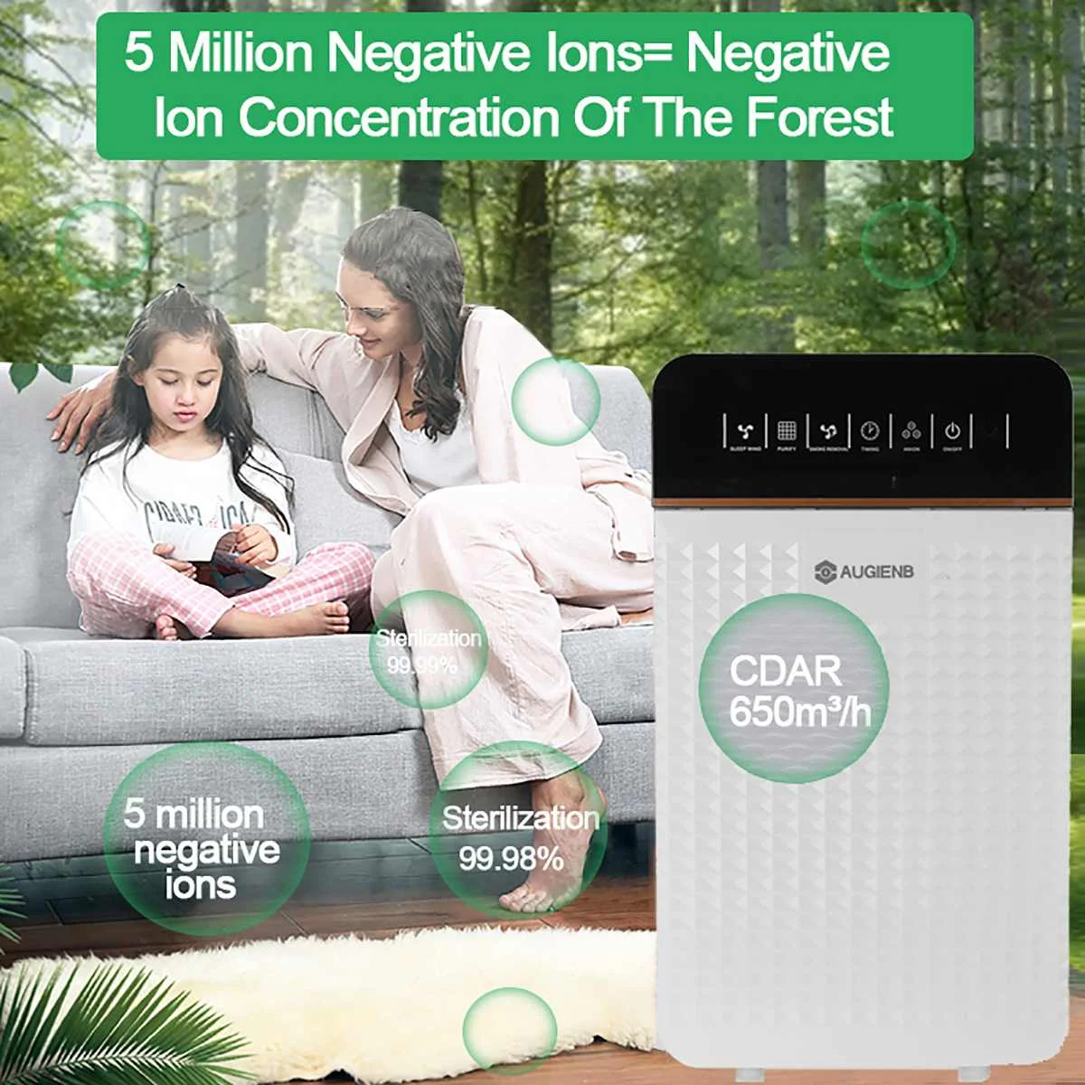 AUGIENB очиститель воздуха HEPA фильтр отрицательные ионы очиститель воздуха удаление формальдегида PM2.5 дыма пыли автоматические мониторы дистанционного управления