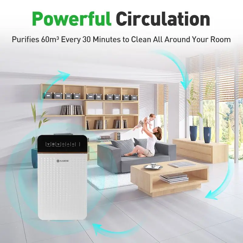 2. Более высокая эффективность для большой комнаты: с сотовым фильтром с активированным углем, настоящим фильтром Hepa, предварительным фильтром, эффективность очистки на 30% выше, а скорость очистки на 30% быстрее, чем у других обычных воздухоочистителей, изменение воздуха 4. 5 раз в час для 360 кв. ФТ. Размер комнаты. Подходит для средних и больших комнат; Спальни, семейные комнаты и кухни