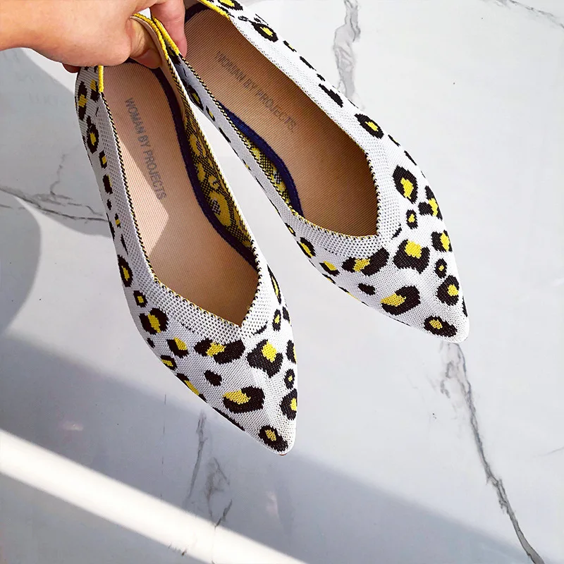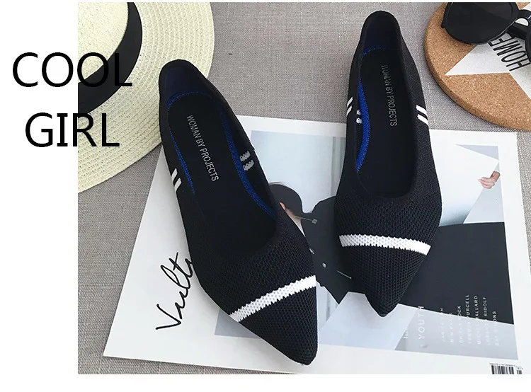Туфли женские с острым носком, мягкая дышащая вязаная обувь, плоская подошва, балетки, удобные летние туфли для беременных