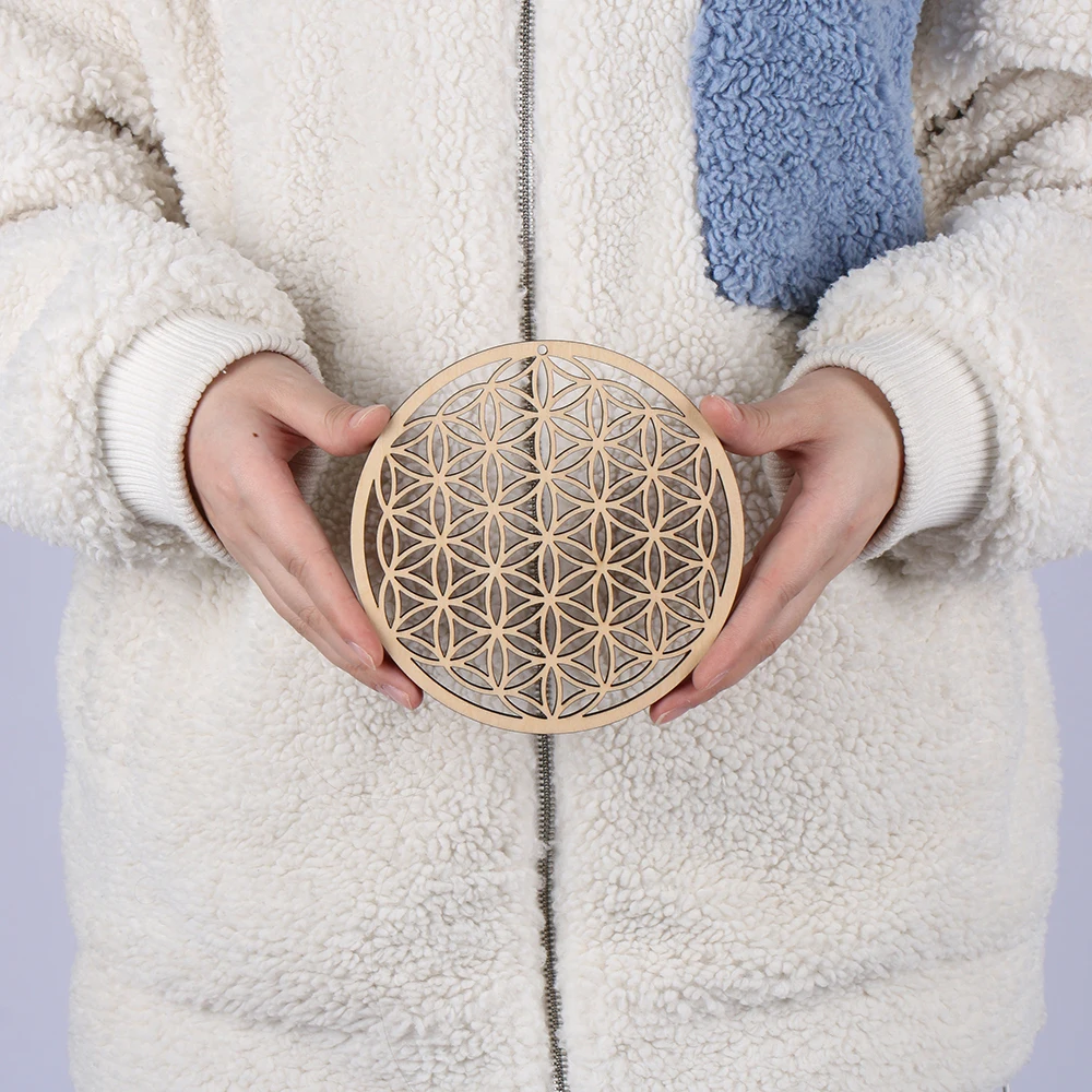 Цветок жизни энергетический коврик геометрические деревянные подставки лазерная резка ломтик деревенское искусство домашний настенный Декор Украшение свадебное украшение