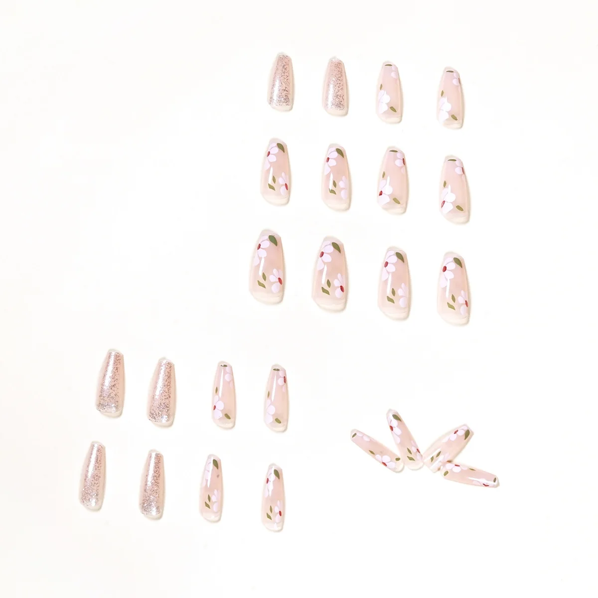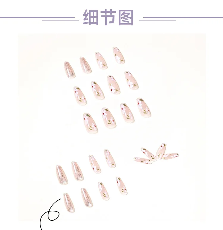 24 шт цветок печатных ногтей патч блестящий клей Тип съемный длинный абзац Мода Маникюр экономить время накладные ногти патч SANA889