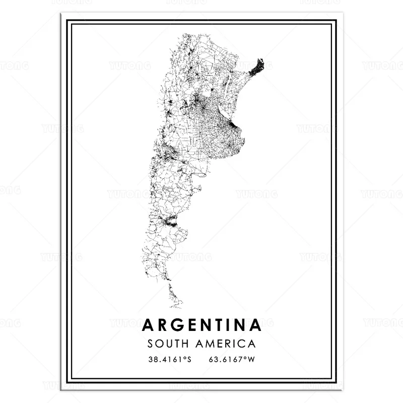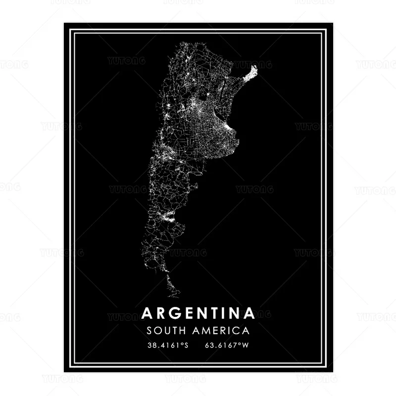 Карта мира Аргентины в стране, украшение для гостиной в скандинавском стиле, холст, плакат, Современный домашний декор, Настенная картина с рамкой STJK17