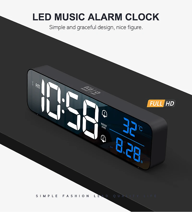 Цифровой светодиодный музыкальный Будильник-перезаряжаемый (Новый) с календарем