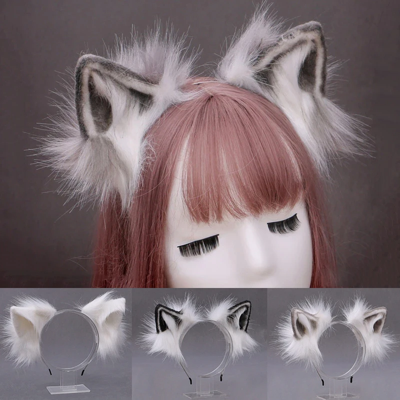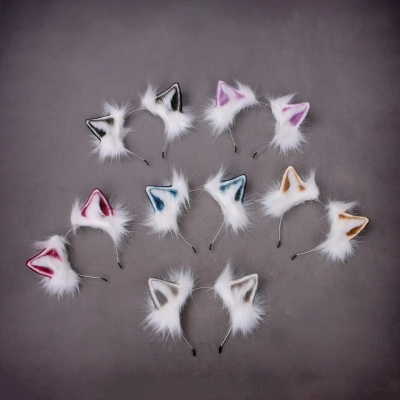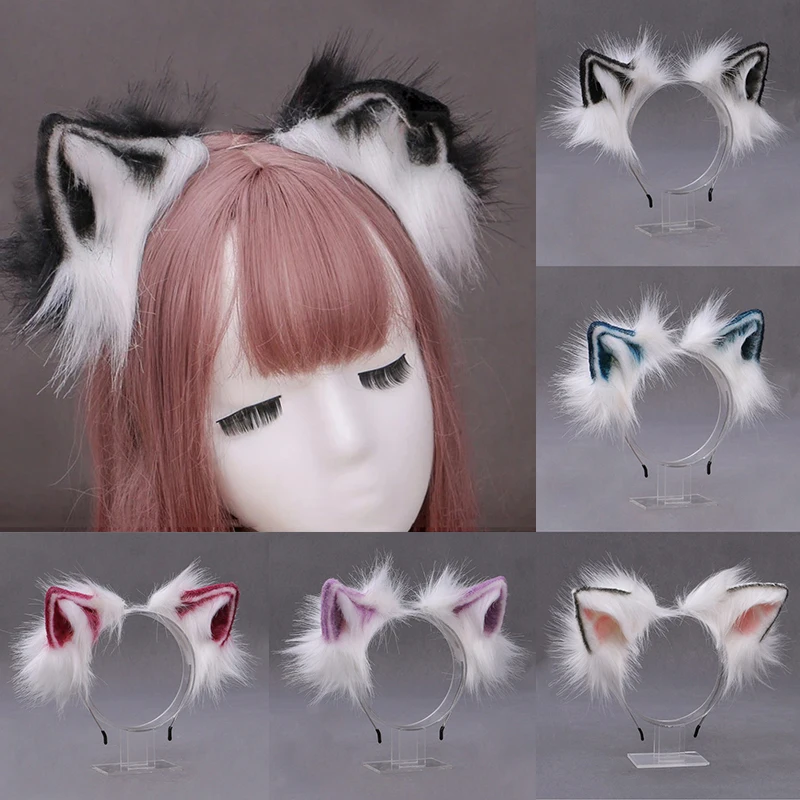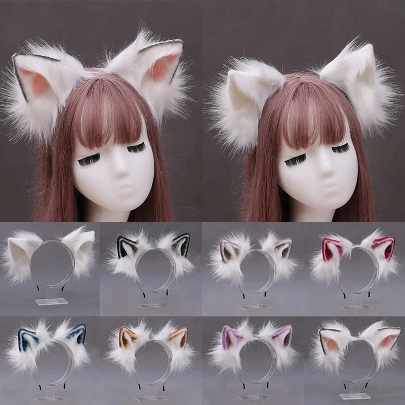 Пушистый обруч для волос в стиле аниме с имитацией зверя, кота, уха, хвоста, волка, уха, кота, лисы, уха, обруч для волос под заказ, косплей KC обруч для волос