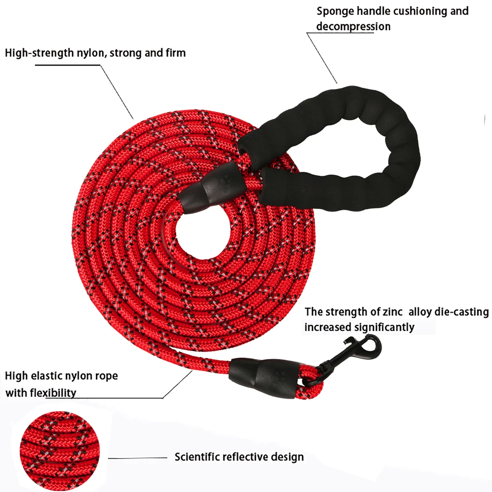 Поводки для домашних животных Светоотражающие многоцветные круглые веревки собачий ошейник большого размера поводок для тренировок Беговая веревка удобная для средних и больших собак