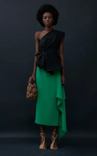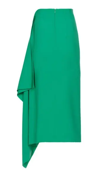 Юбка-миди драпированная из крепа, Длинная зеленая ассиметричная прямая юбка с оборками, на молнии, элегантные юбки с завышенной талией