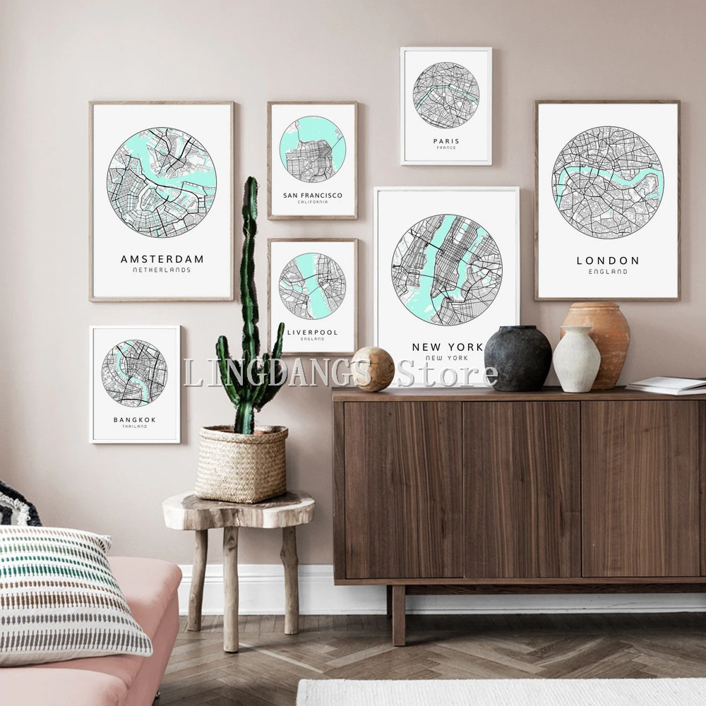 Алмазная 5d картина сделай сам, картина из страз, Париж, Лондон, Нью-Йорк, Рим, уличная карта, скандинавский искусство, мозаика из страз, вышивка крестиком, домашний декор