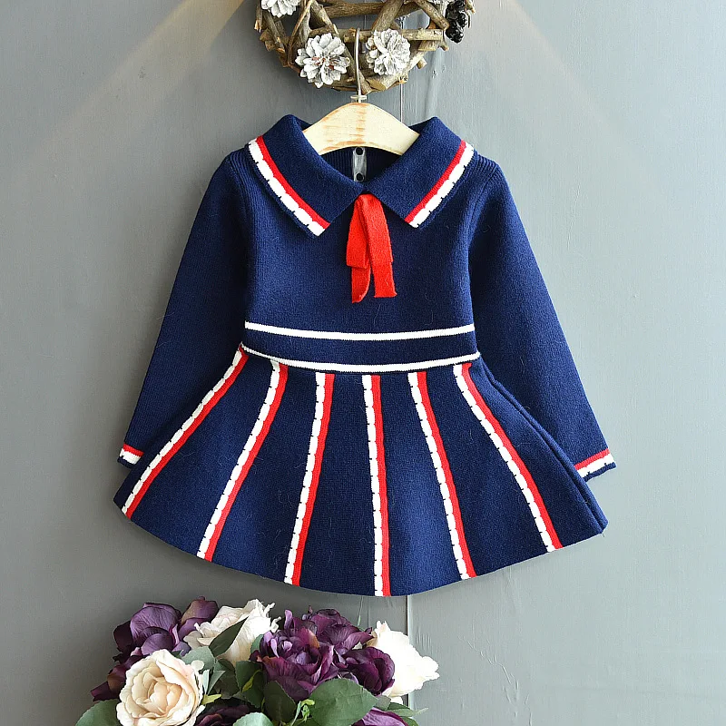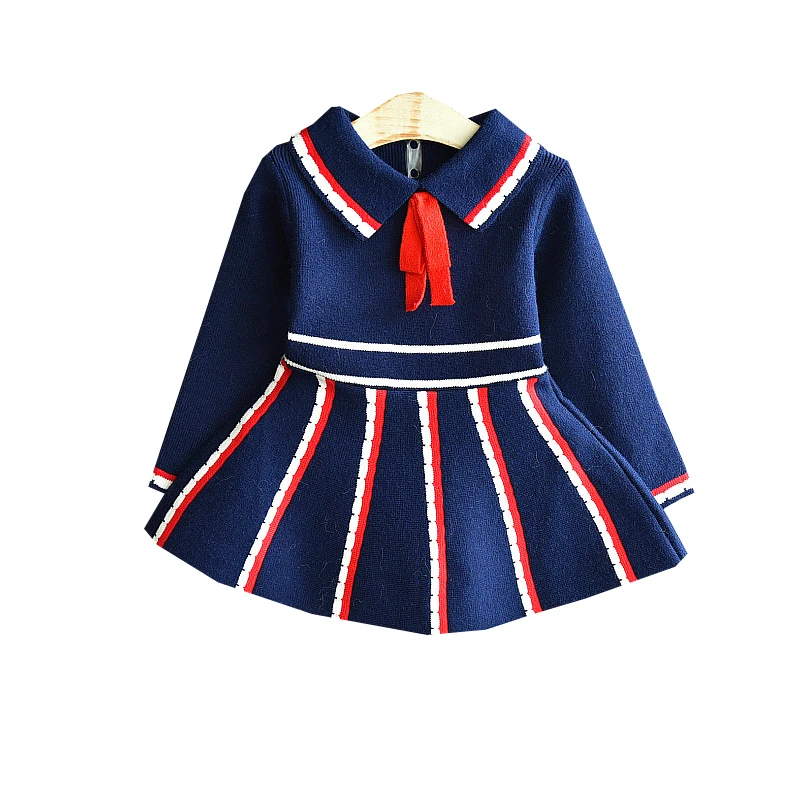 Платье-свитер для девочек, Осень-зима 2022, ветрозащитное Плиссированное весенне-осеннее детское платье принцессы в полоску с лацканами