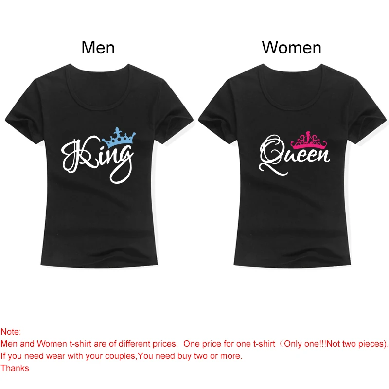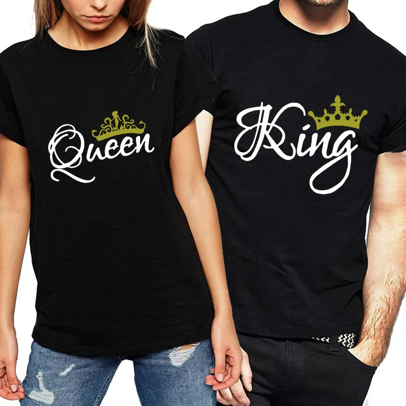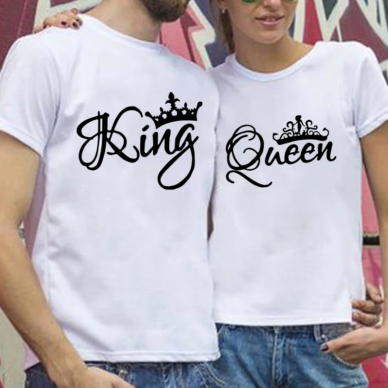 Футболка с коротким рукавом для влюбленных, модная Повседневная рубашка с принтом короны короли и короли, для мужчин и женщин, на лето