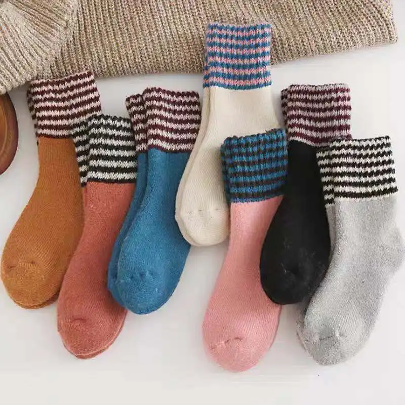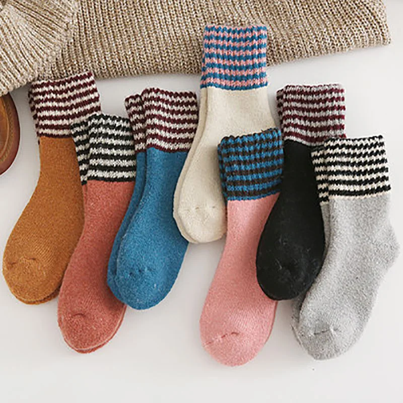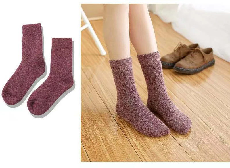 Зимние Женские однотонные утолщенные теплые мягкие шерстяные носки ...