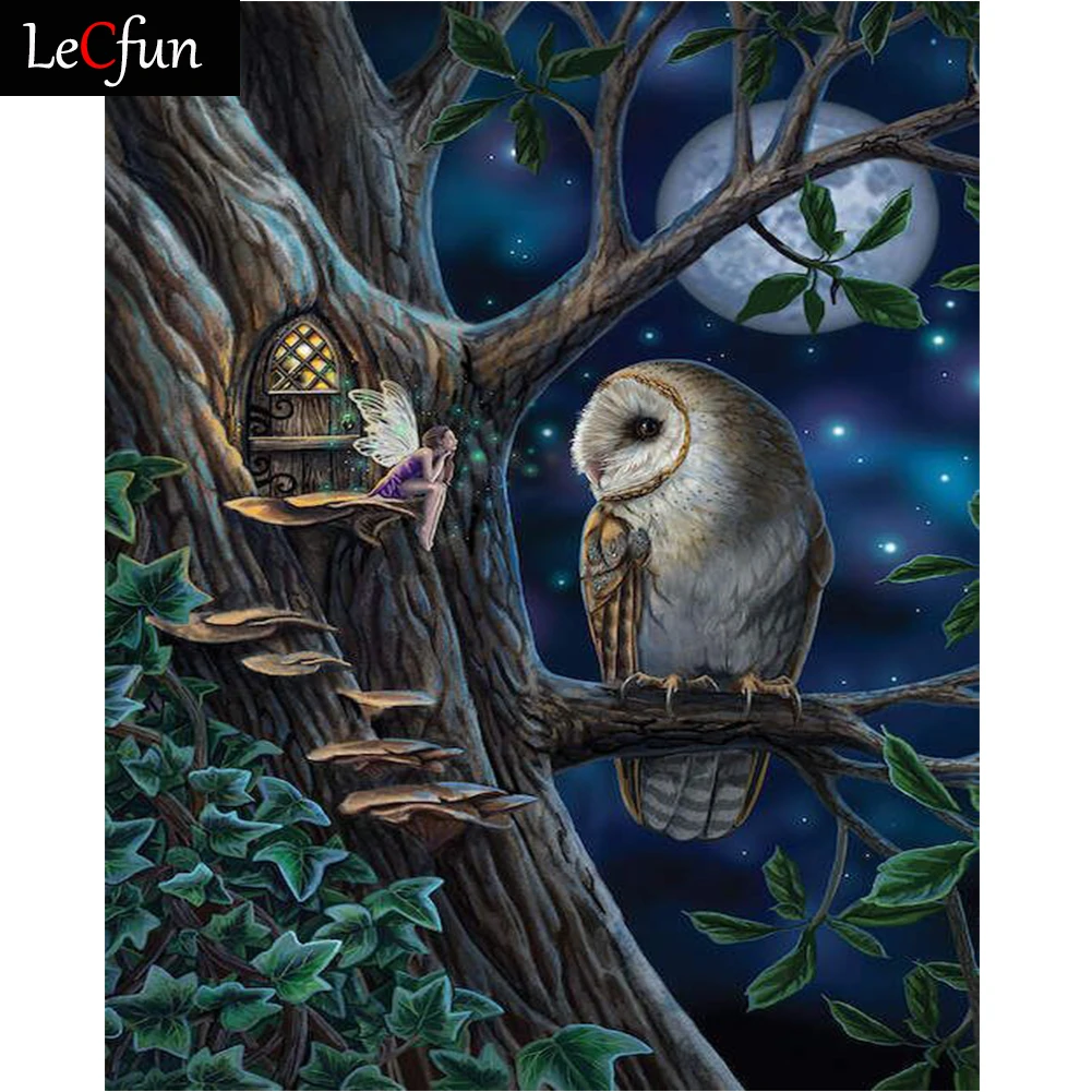 LeCfun, сова, эльф, искусство, рукоделие, 5D, сделай сам, полностью квадратная, круглая, стразы, вышивка крестиком, домашний декор, праздничный подарок