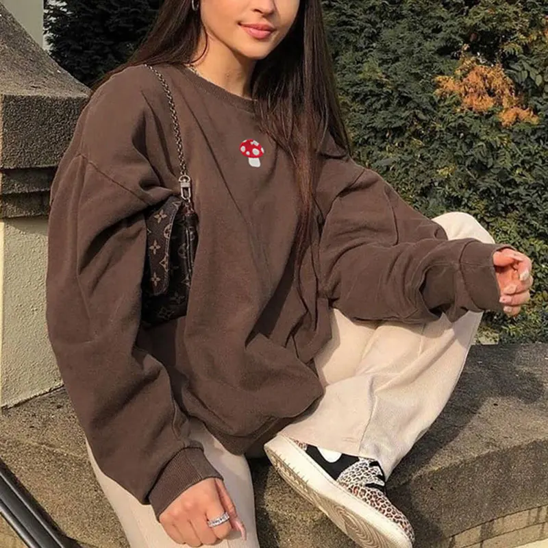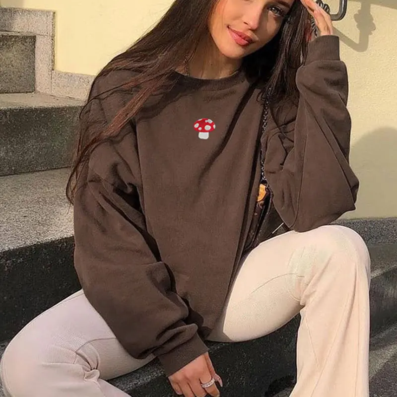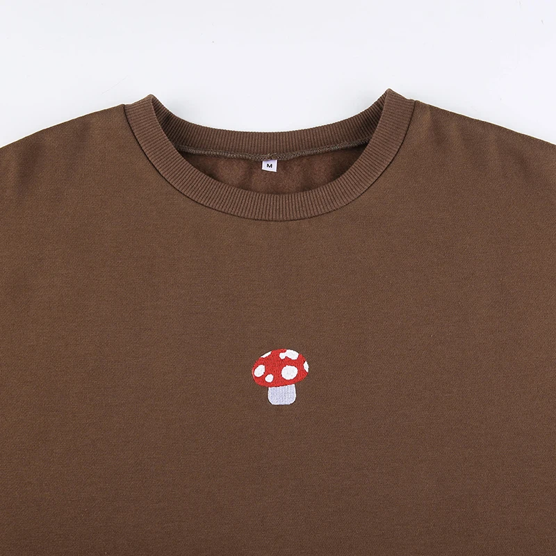 Свитшот с вышивкой в виде грибов в стиле Харадзюку, с круглым вырез...