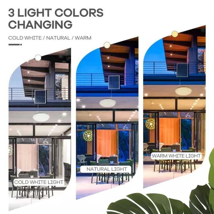 Аккумулятор солнечной потолочной лампы устанавливается в потолочную лампу, а не в солнечную панель, что означает, что даже если солнечная панель не подключена после полной зарядки, ее можно включить!