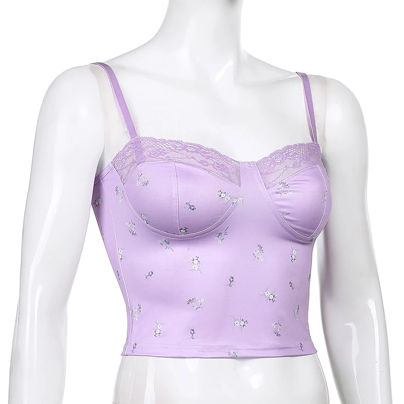 Y2K эстетические милые цветочные топы Женский с кружевной отделкой ...