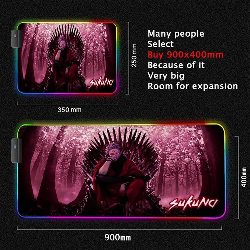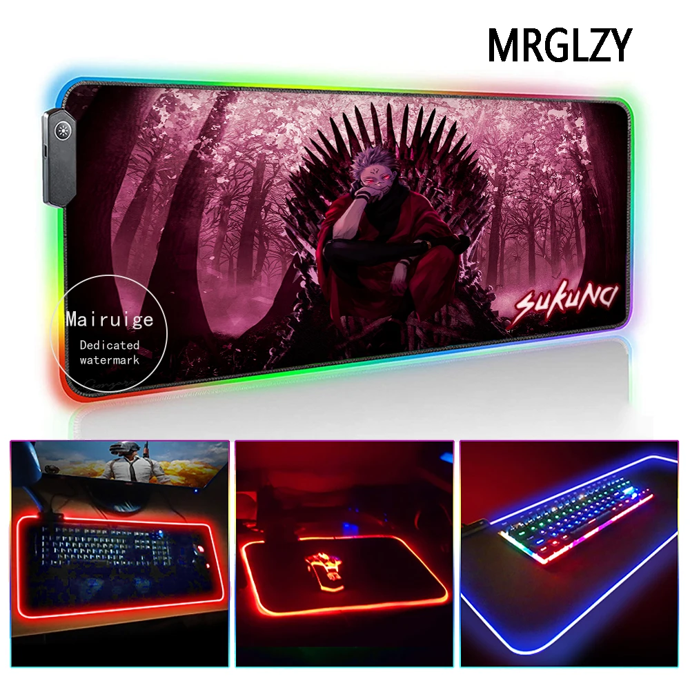 Коврик для мыши MRGLZY аниме juюттусу Kaisen со светодиодной подсветкой RGB для геймеров XXL Sukuna большой Настольный коврик игровые аксессуары для клавиатуры ноутбука