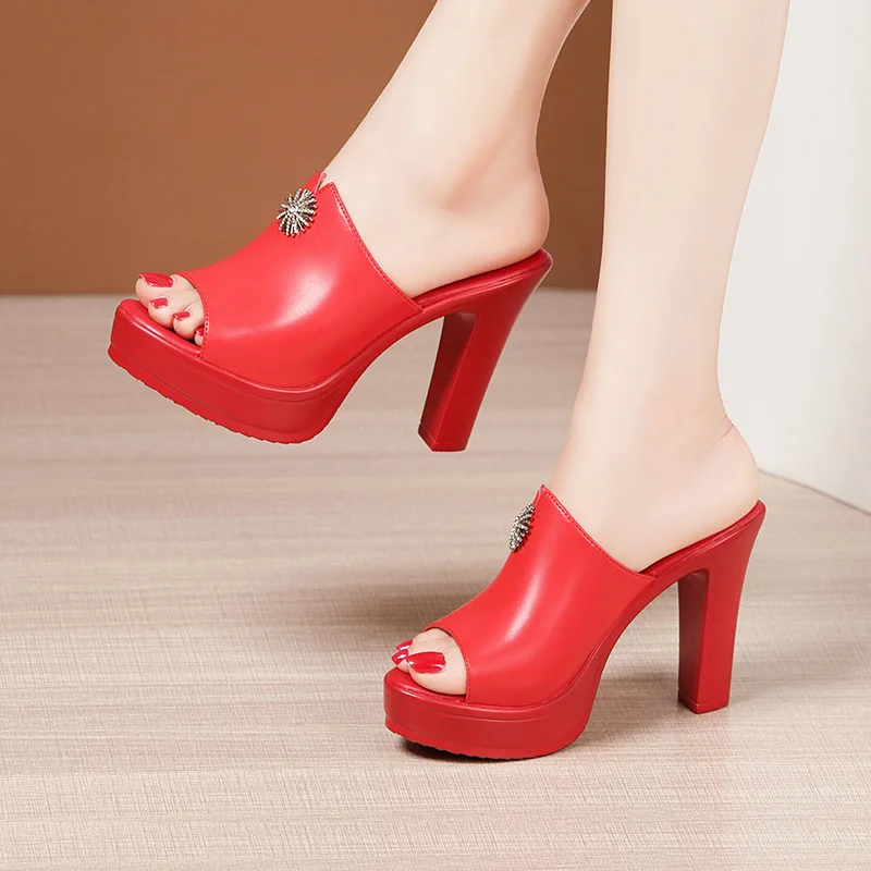 Женские шлепанцы из спилка, на квадратном каблуке, размеры 32-43