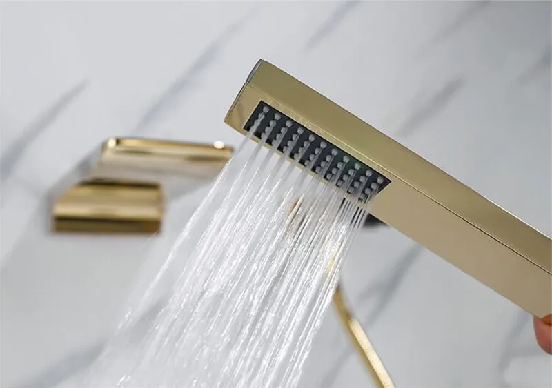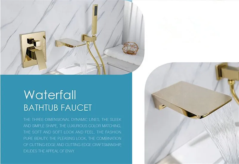 Tuqiu Золотой смеситель для ванны, набор для душа, латунный Смеситель для ванны и душа, смеситель для ванны с ручным водопадом, Черный кран для ванны