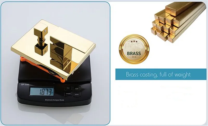 Набор золотого смесителя для ванны и душа, однотонный латунный Смес...