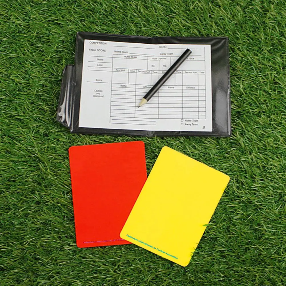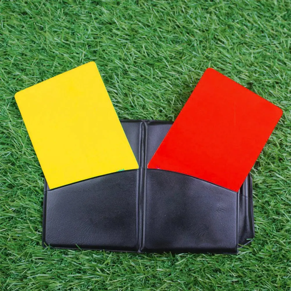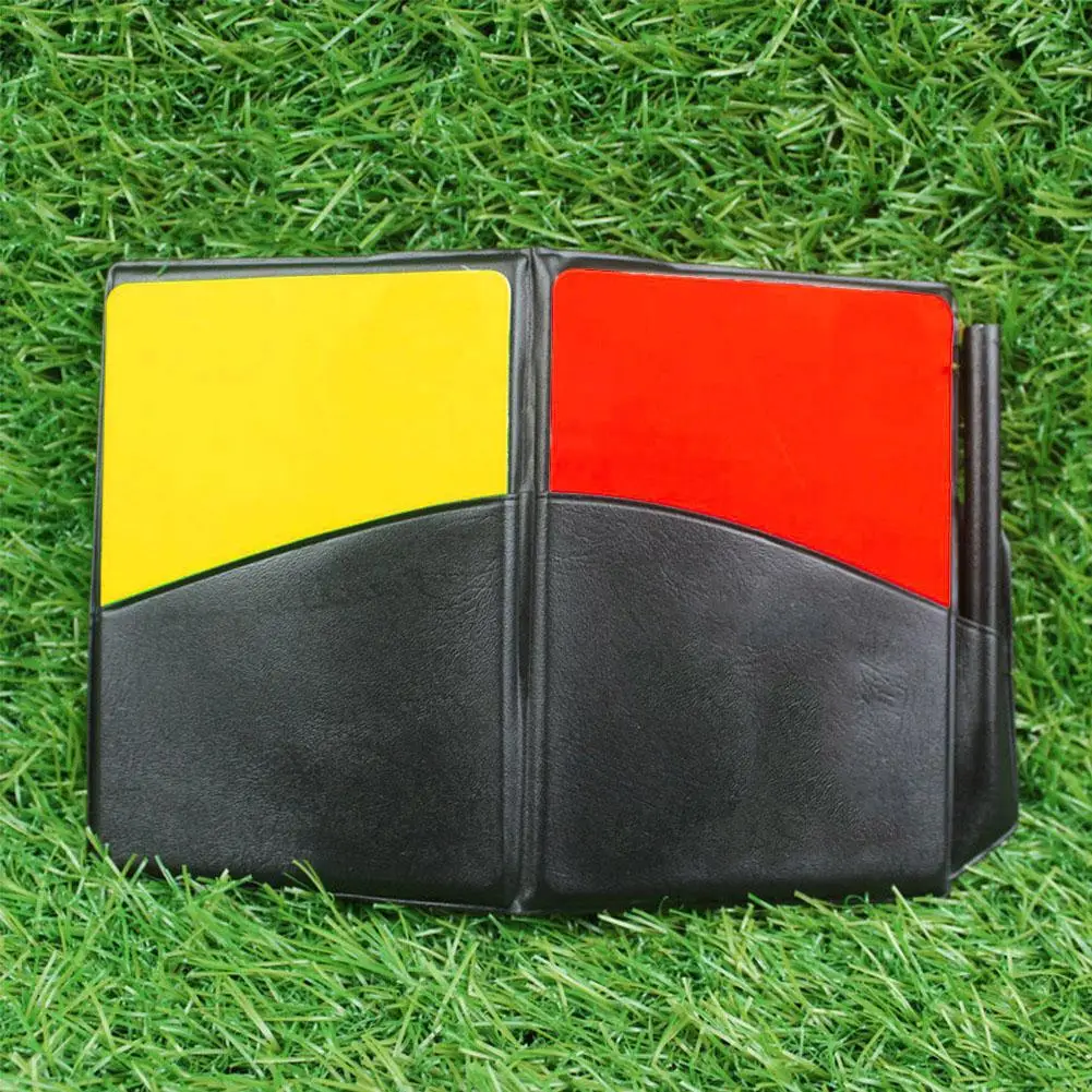 Флуоресцентная красно-желтая карта с кожаным кошельком, записывающая бумага, запись футбольных игр, записывающая арбитра, инструмент для футбольного матча