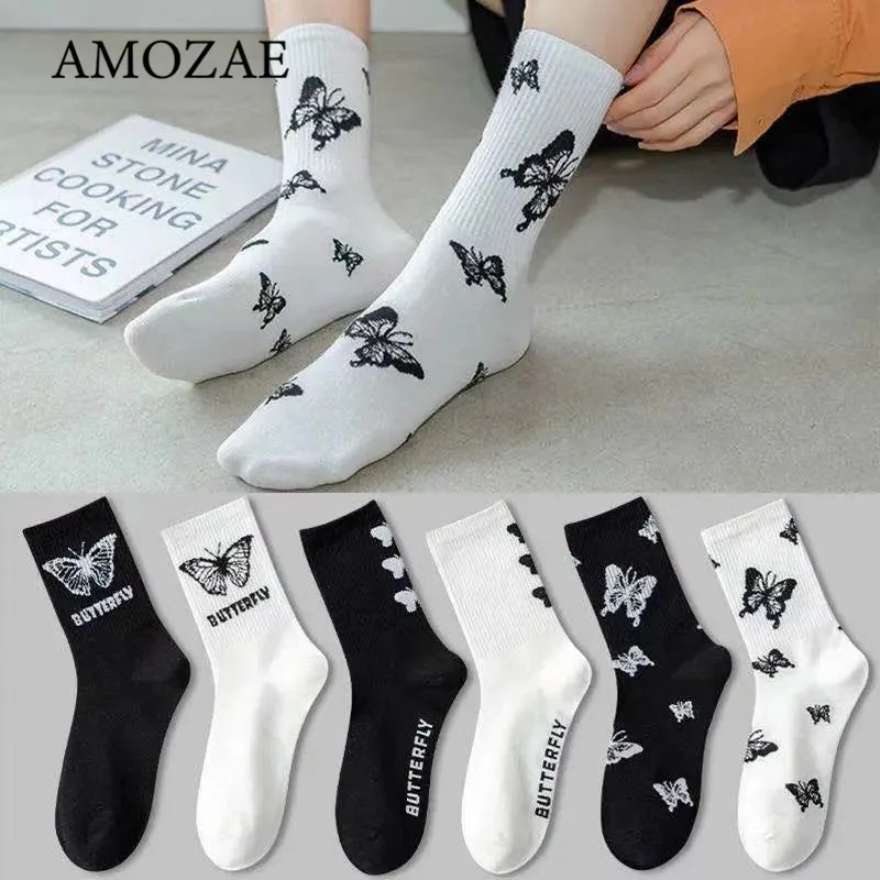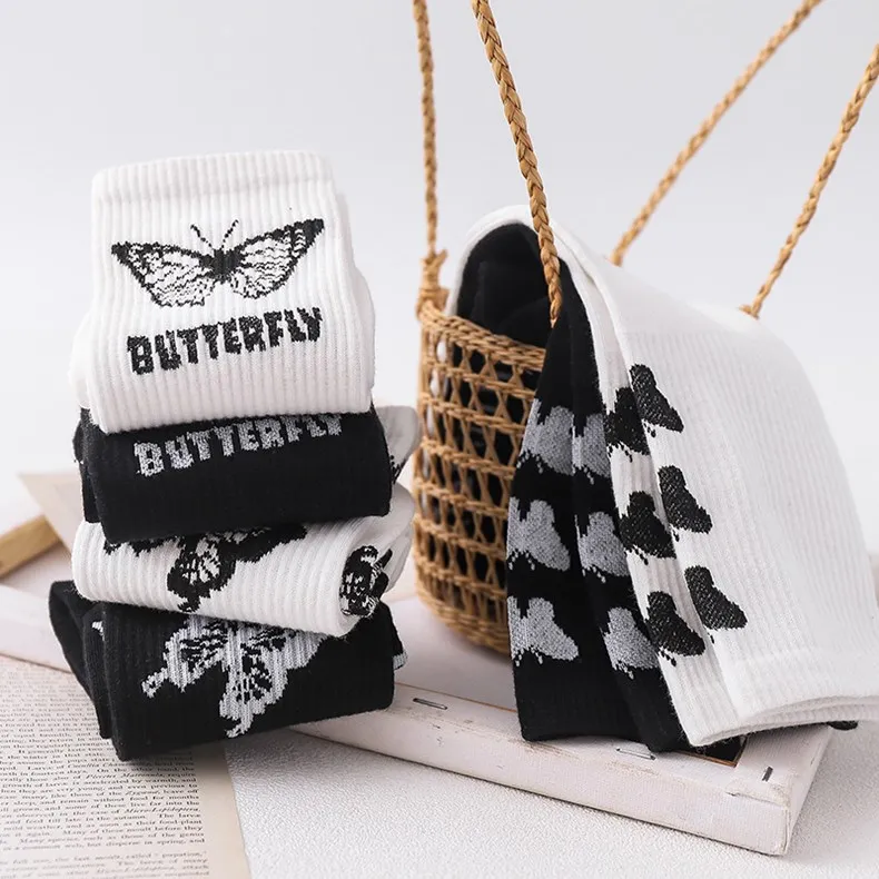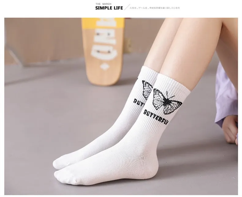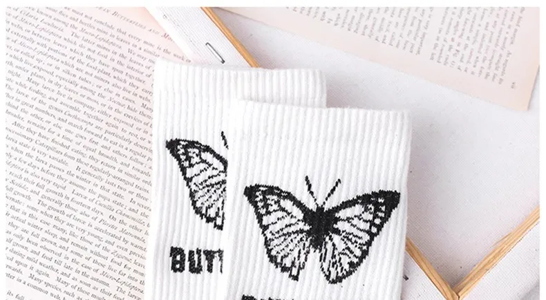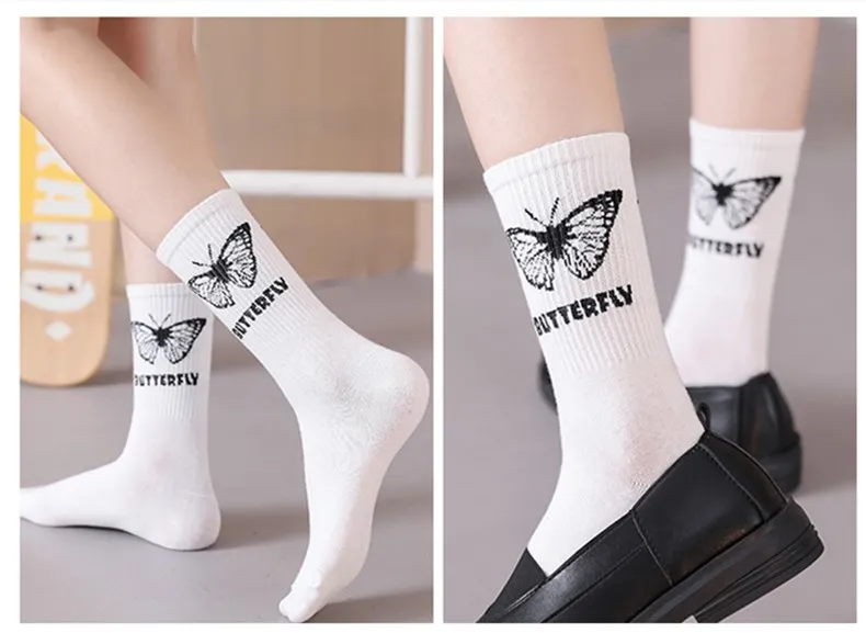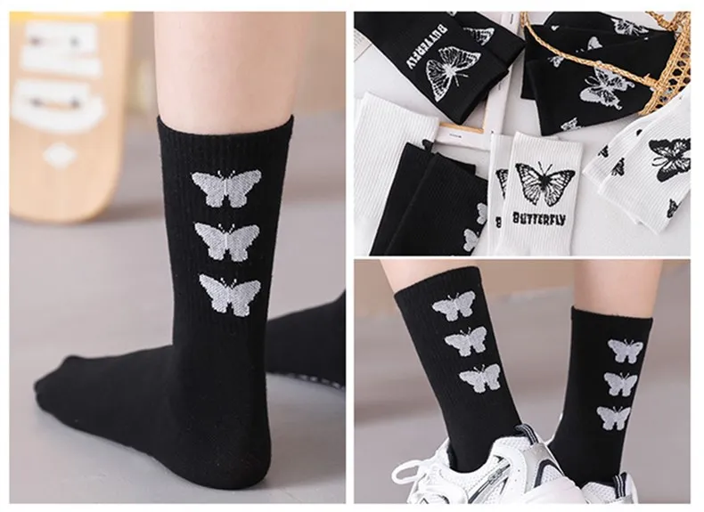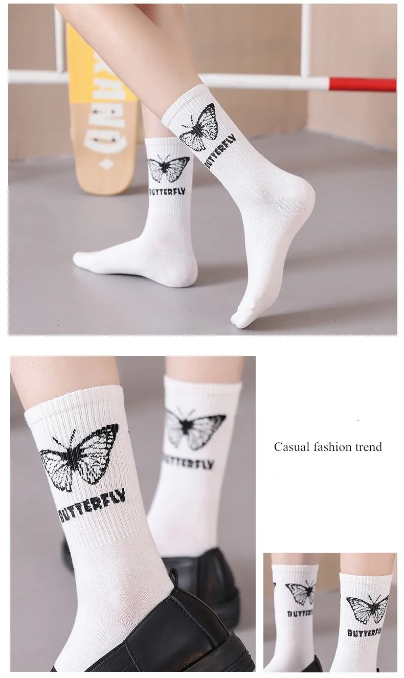 Носки женские с рисунком бабочки, милые модные дамские носки в стил...