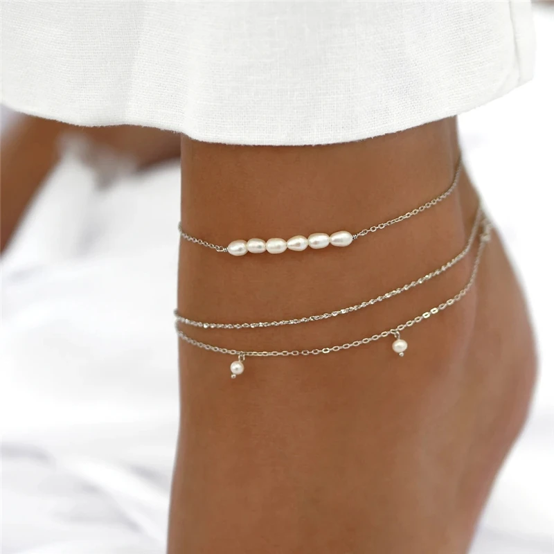 Золотой цвет серебряный цвет трендовые жемчужные бусы ножные браслеты для женщин винтажный Бохо Цепочка ножной браслет для ног браслет подарки ювелирные изделия