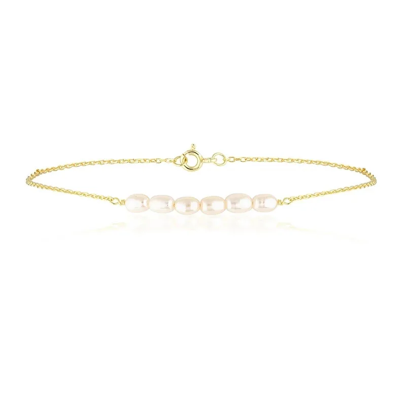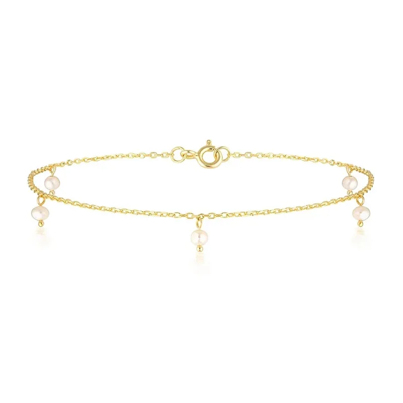 Браслет на ногу женский из серебра 925 пробы с жемчужными бусинами