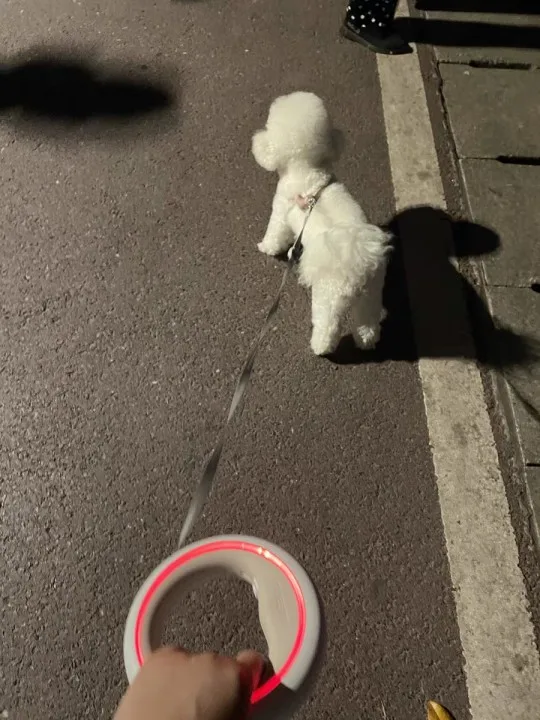 Освещение этого поводка очень классное! Делает ходьбу ночью намного веселее. Я думаю, что яркости белого света достаточно для темного тротуара. В целом, Длина поводка достаточно, и я думаю, что встроенное качество отличное-кажется, что он может прослужить много жевательных шаров моей собаки.