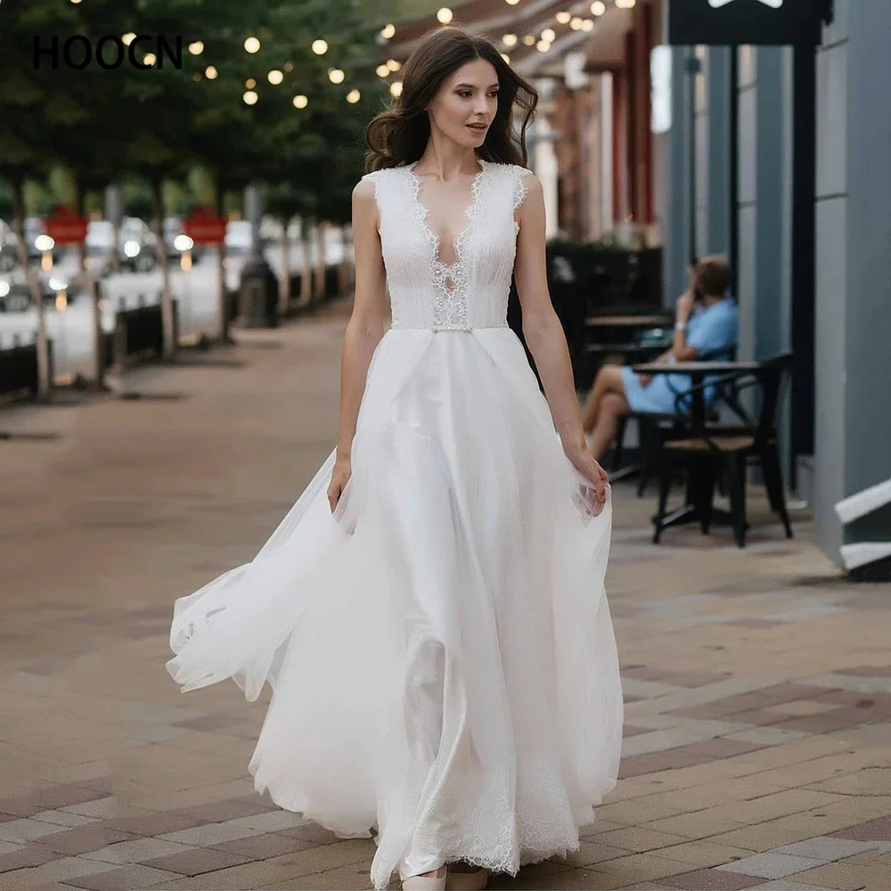 HERBURNL простое свадебное платье с v-образным вырезом и кружевом US $689,00