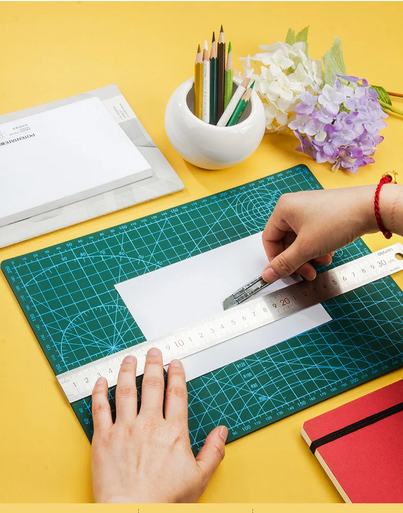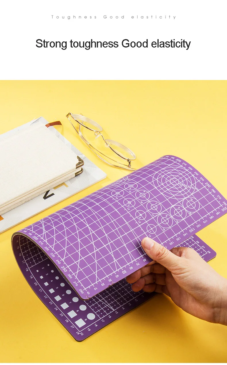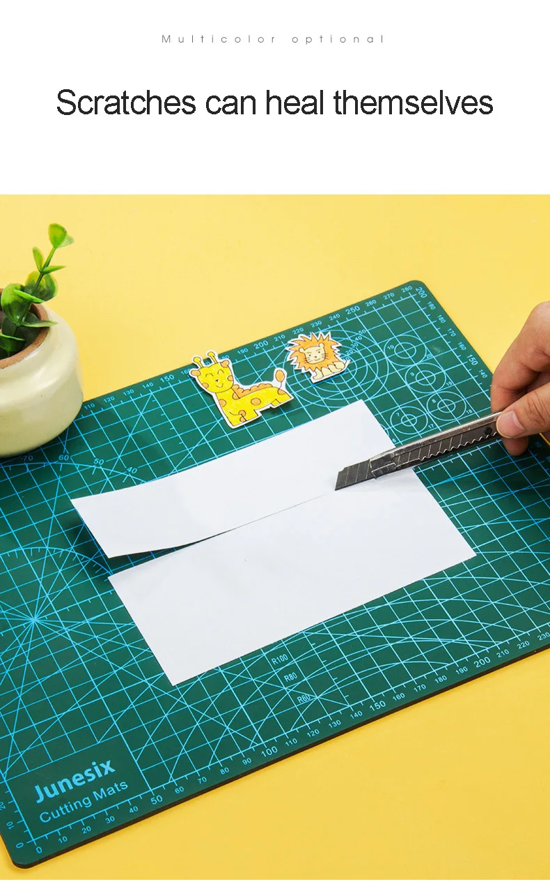 1. Разделочная доска защищает лезвие и продлевает срок службы лезвия; 2. Защитите Рабочий стол от царапин или загрязнений; 3. Сделать резку проще, вырезать прямые линии без стальной линейки; 4. Материал ПВХ, повторная резка не влияет, не отражающая нескользящая; 5. Используется для крафт-резьбы бумаги, резки пленки, изготовления моделей, коврик для мыши, Настольный коврик;