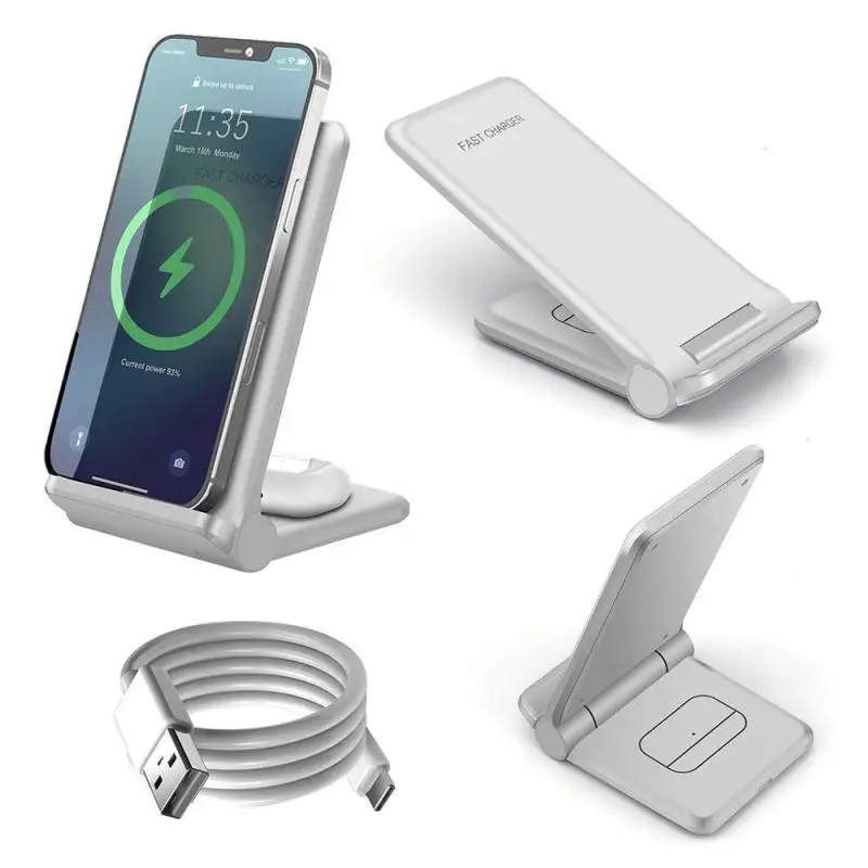 Беспроводное зарядное устройство QI 2 в 1, складная зарядная подста...