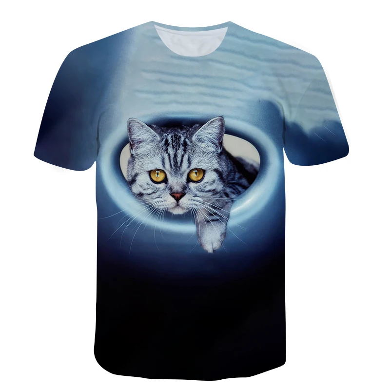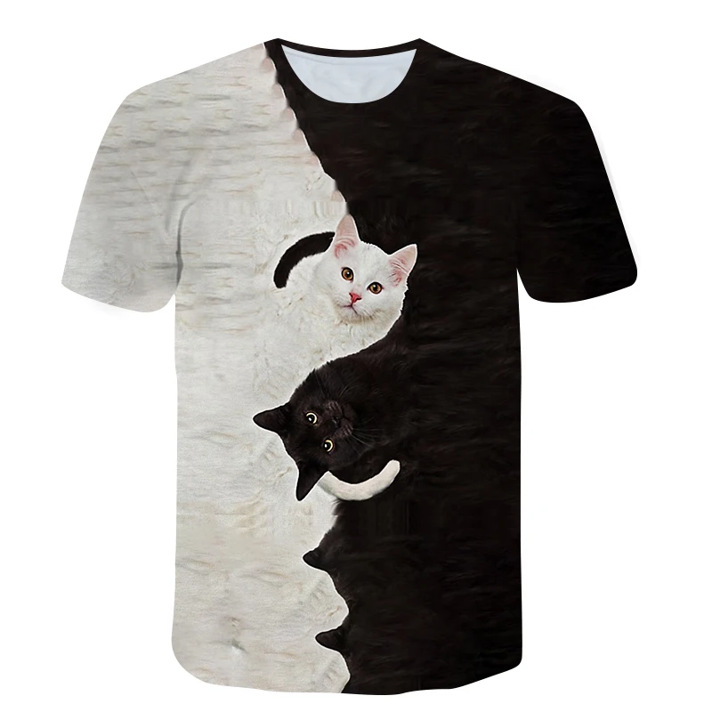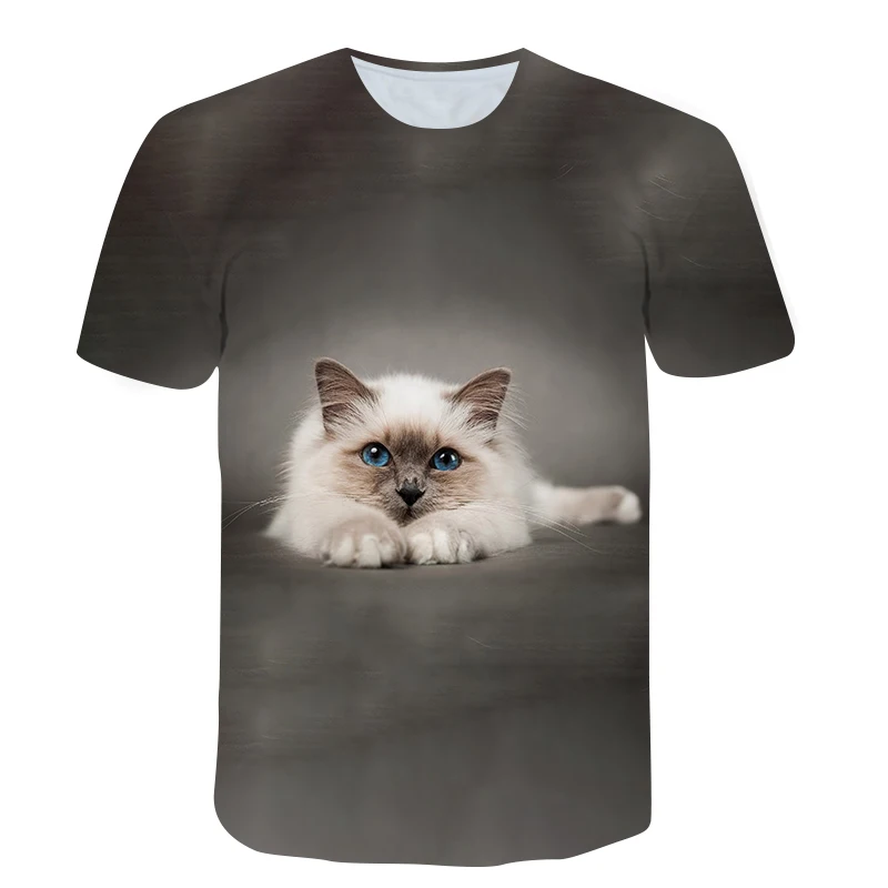 Летняя футболка с коротким рукавом и 3D-принтом милого кота для женщин и мужчин, рубашка с круглым вырезом, одежда