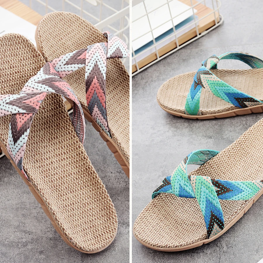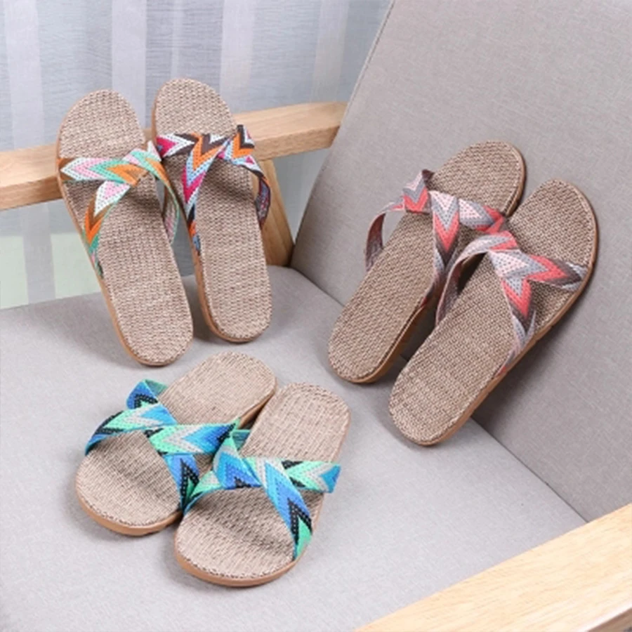 Шлепанцы женские, из льна, 13 цветов, Нескользящие, размер 35-45