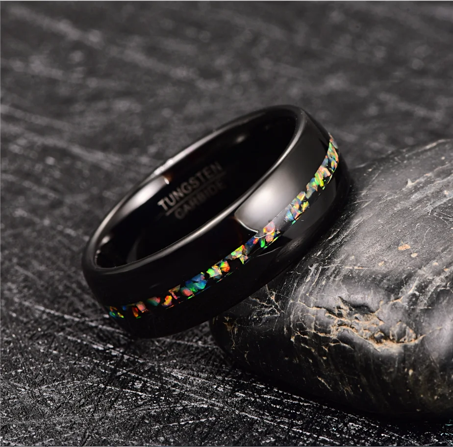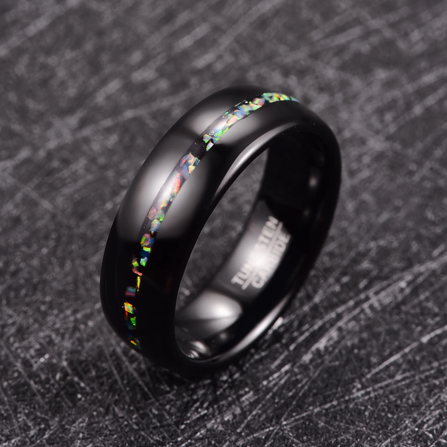 BONLAVIE 8 мм черное кольцо из карбида вольфрама с опалом обручальное кольцо для MenComfort Fit кольца ювелирные изделия для помолвки подарок хорошее качество