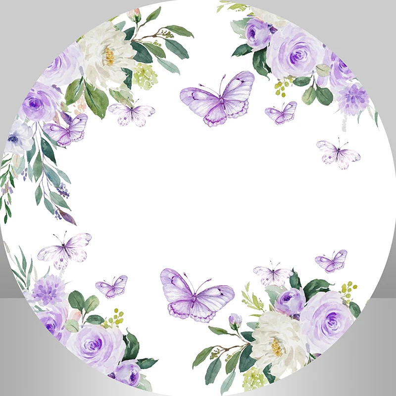 Пользовательские круглые фоны для дня рождения с изображением бабочки девушки фиолетовые Акварельные Цветы десерт стол украшения круглый фон