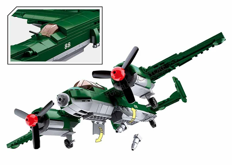 Модель конструктора SLUBAN, Вторая мировая война, военно-воздушные силы, Советский Союз, TU-2, бомбардировщик, модель MOC, классический фильм, игрушки для детей