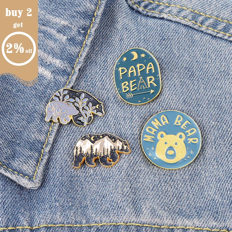 Эмалированные булавки с изображением лесного сада, мама, медведь, папа, медведь, мешочек для брошек, Мультяшные, значки с животными, ювелирные изделия, подарок для друзей, оптовая продажа