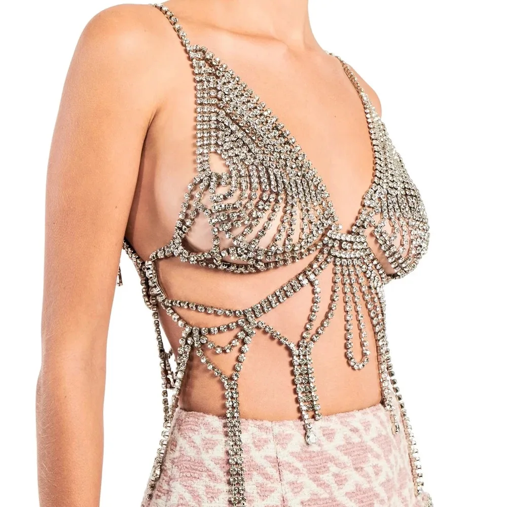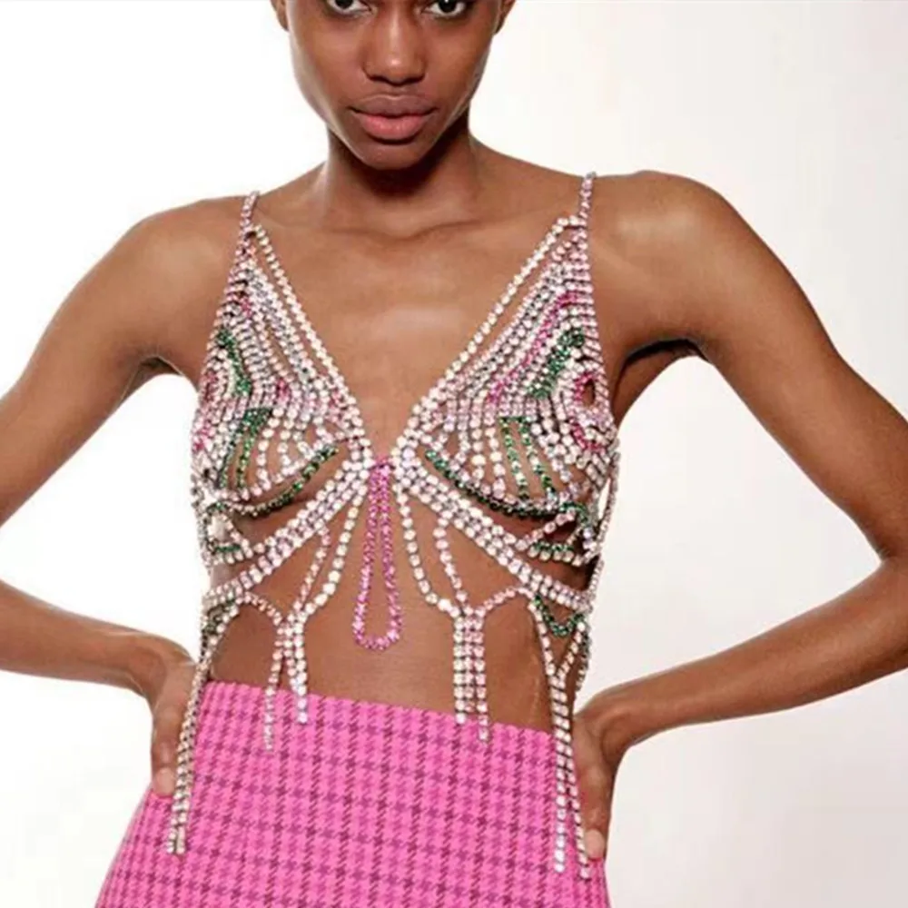 Преувеличенный большой бабочки с украшением в виде кристаллов Bralette средства ухода за кожей груди цепи жгут топ-бюстгальтер для женщин роскошные стразы бюстгальтер со вставкой, ювелирное изделие для тела,