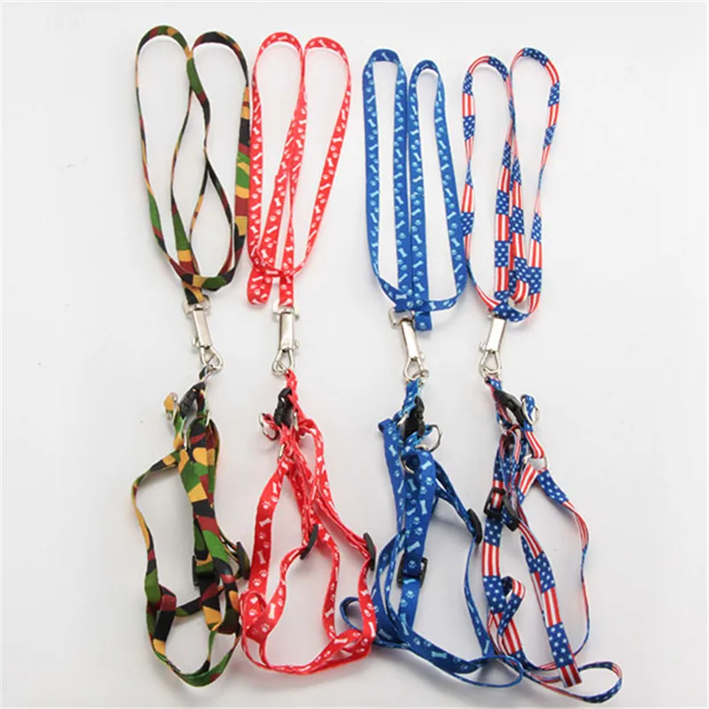 Регулируемый шнурок 1 см с принтом для маленьких домашних животных, собак, кошек, ремень со свинцовым поводком, нагрудный ремень, поводки для домашних животных, случайный цвет