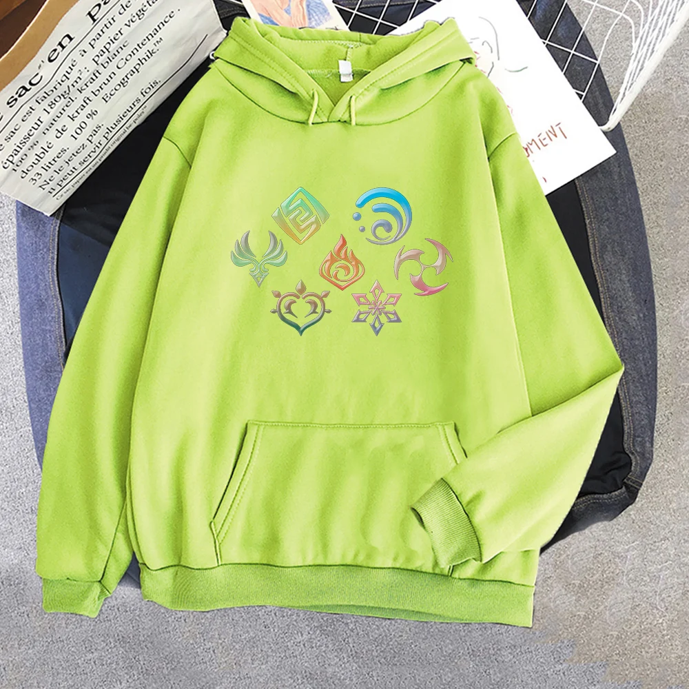 Толстовки Genshin Impact Element женская уличная одежда с принтом Ulzzang графические толстовки Одежда аниме топы с длинным рукавом и круглым вырезом