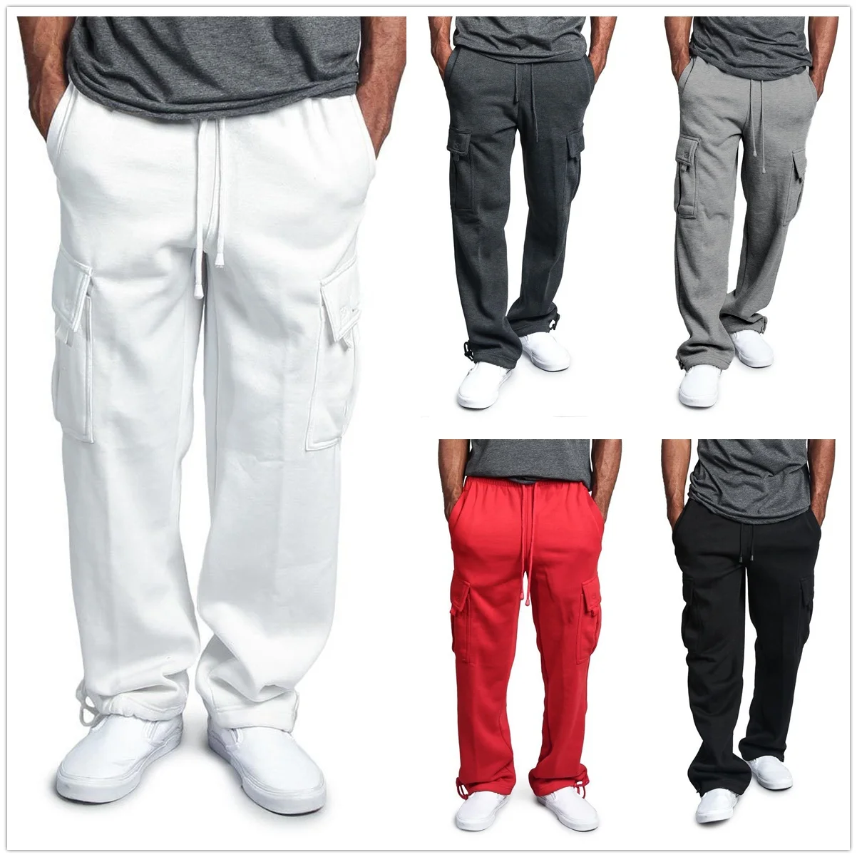 Новые модные мужские свободные брюки, повседневные Прямые брюки, однотонные спортивные брюки с несколькими карманами