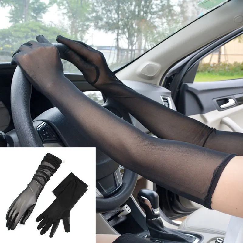 Перчатки женские ультратонкие, длинные пикантные солнцезащитные перчатки для вождения и велоспорта, элегантные кружевные Сетчатые эластичные, с защитой от УФ-лучей, черные, на лето