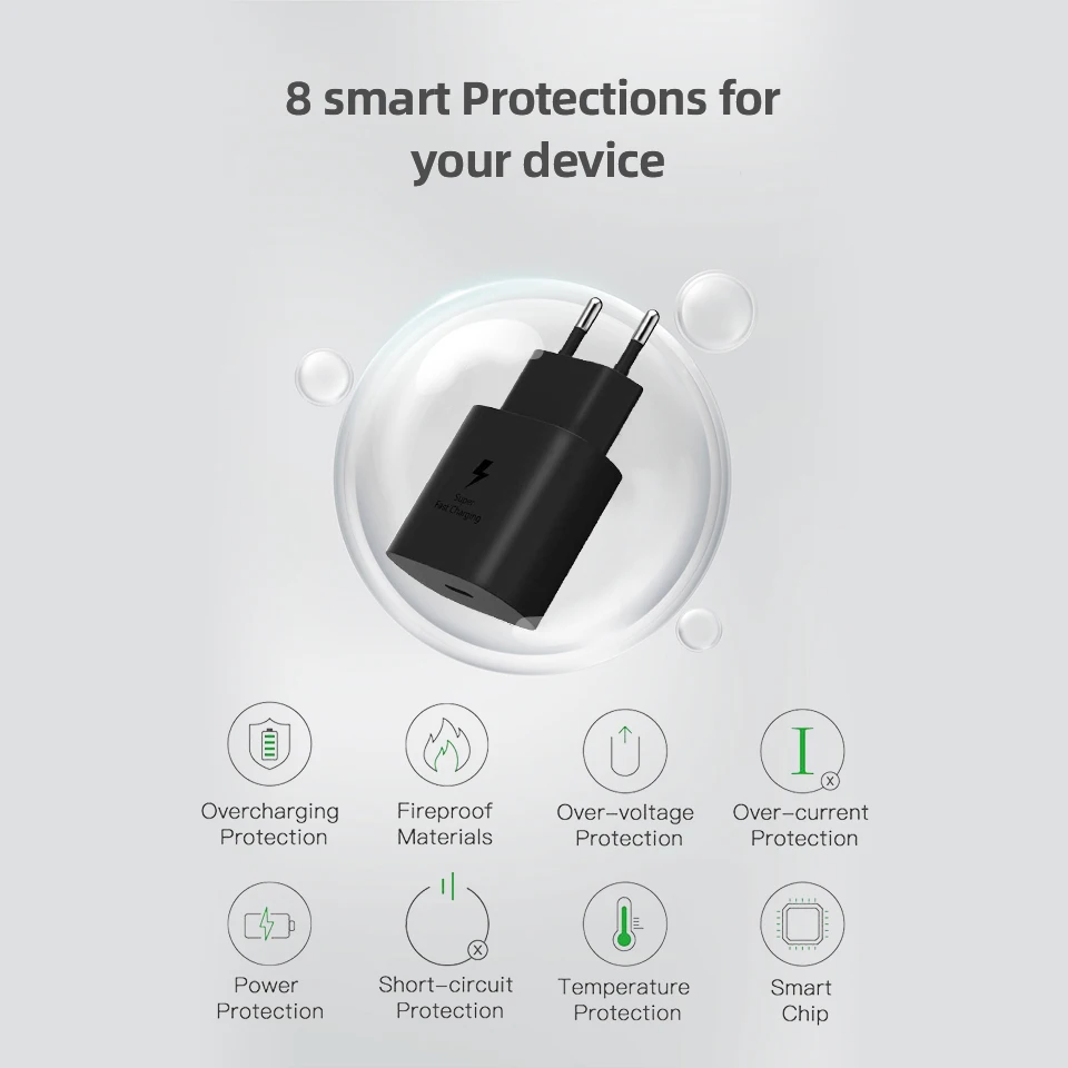 Супербыстрое зарядное устройство для Samsung S21 Note 20 10 A70, зарядное устройство, 25 Вт, адаптер питания европейского стандарта для Galaxy A52, A72, S20, A90, A80, S10, кабель Type C