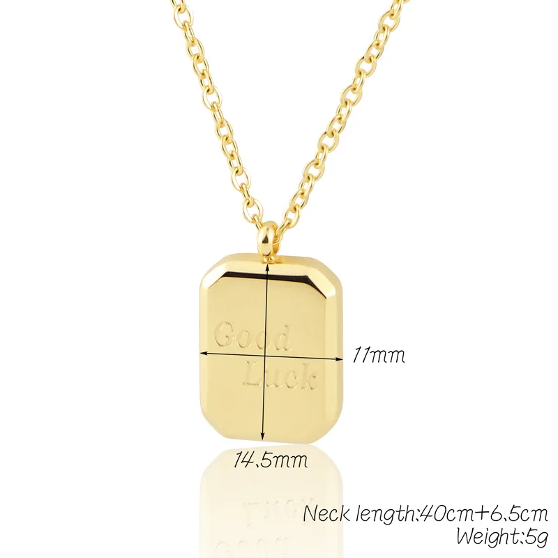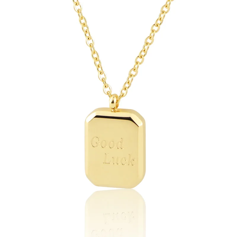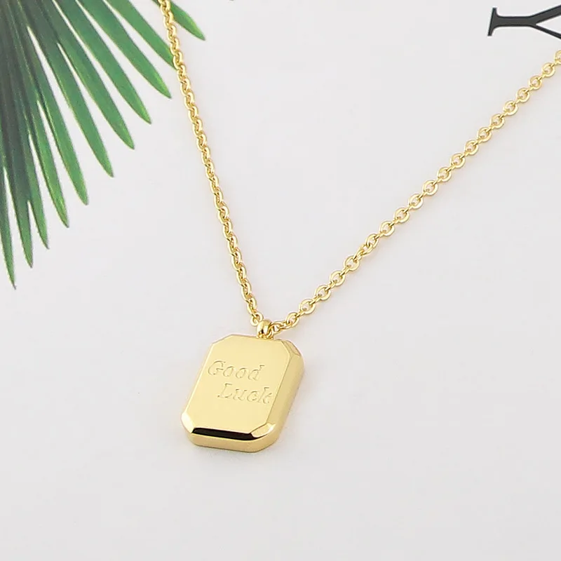 Модное классическое ожерелье из нержавеющей стали с квадратной гравировкой и кулоном на удачу для женщин Подарки на любовь ювелирные изделия оптом