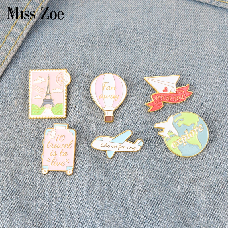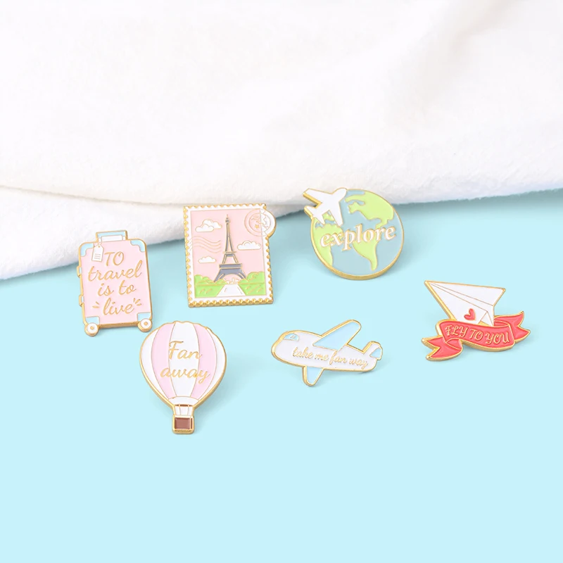 Эмалированные булавки для путешествий, индивидуальная брошь для почтовых отправлений, чемоданов, лацканов, значков для сумок, мультяшное путешествие, ювелирные изделия, подарок для детей, друзей