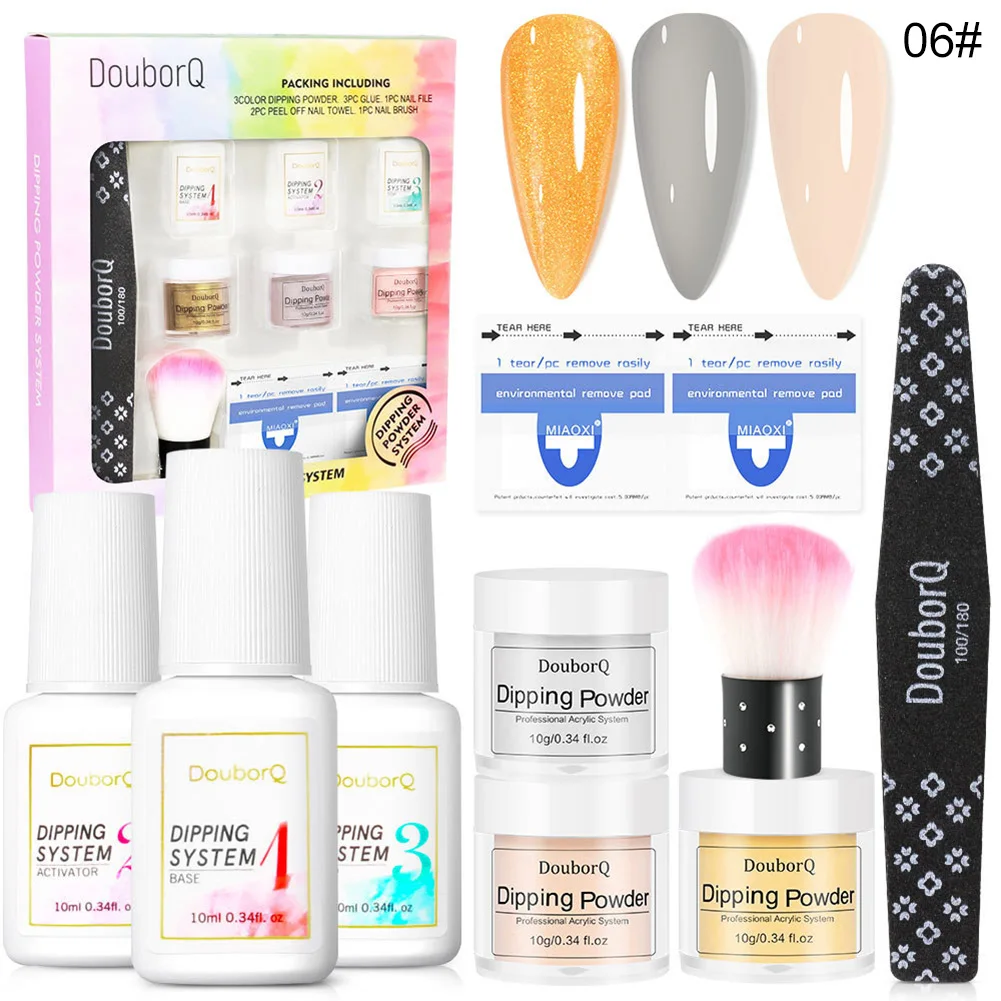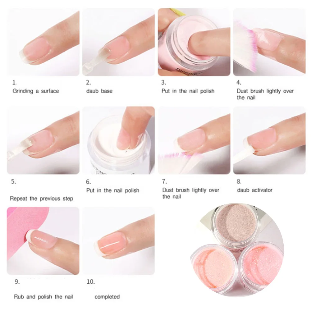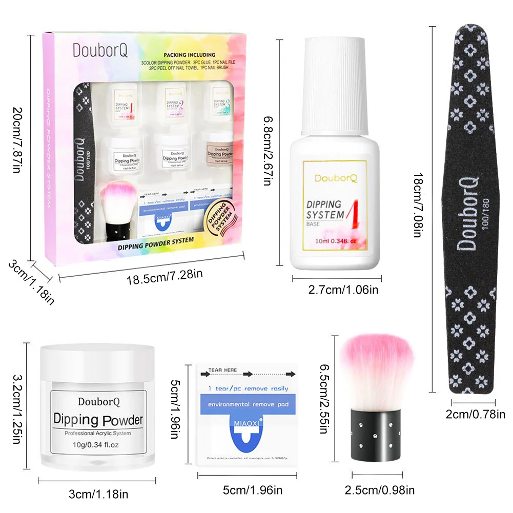 * 5. Посылка включает в себя 3 * окунания порошка, 1 * пилка для ногтей, 3 * Базовое покрытие, 2 * накладки для удаления ногтей, 1 * Кисть для ногтей.