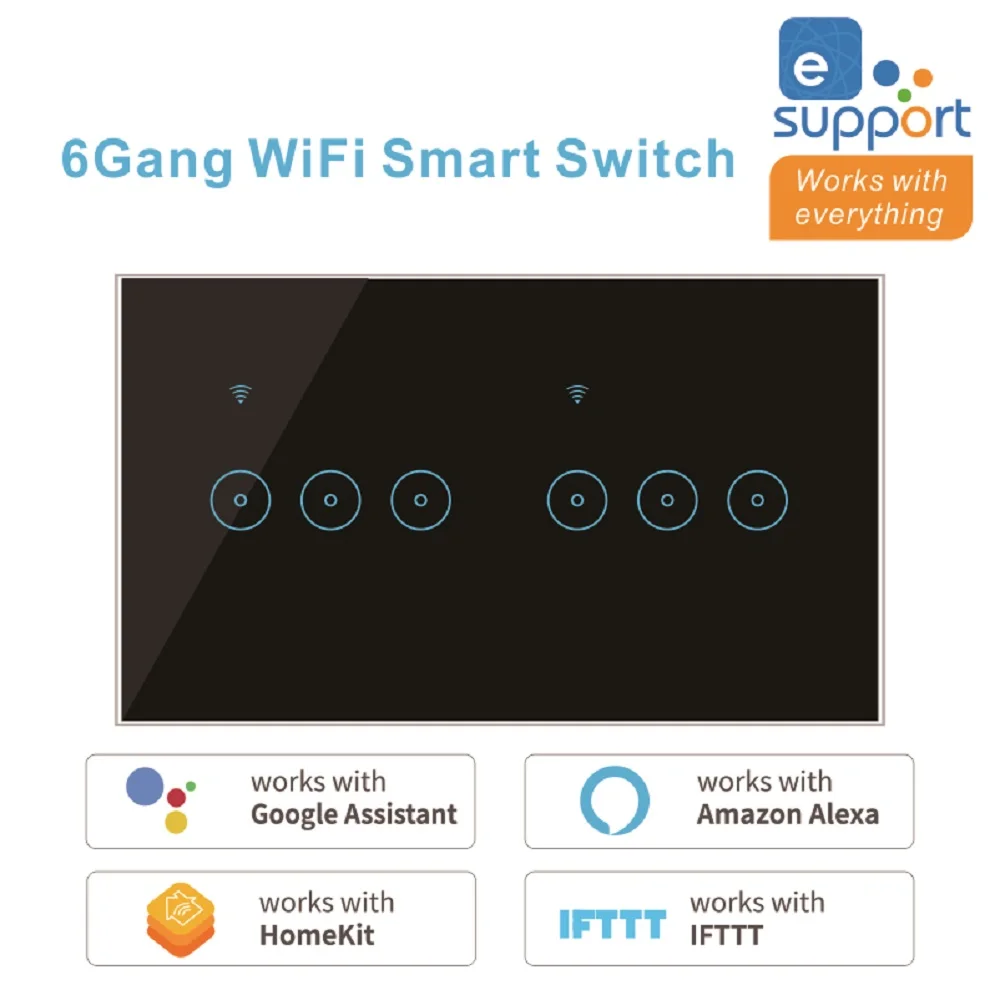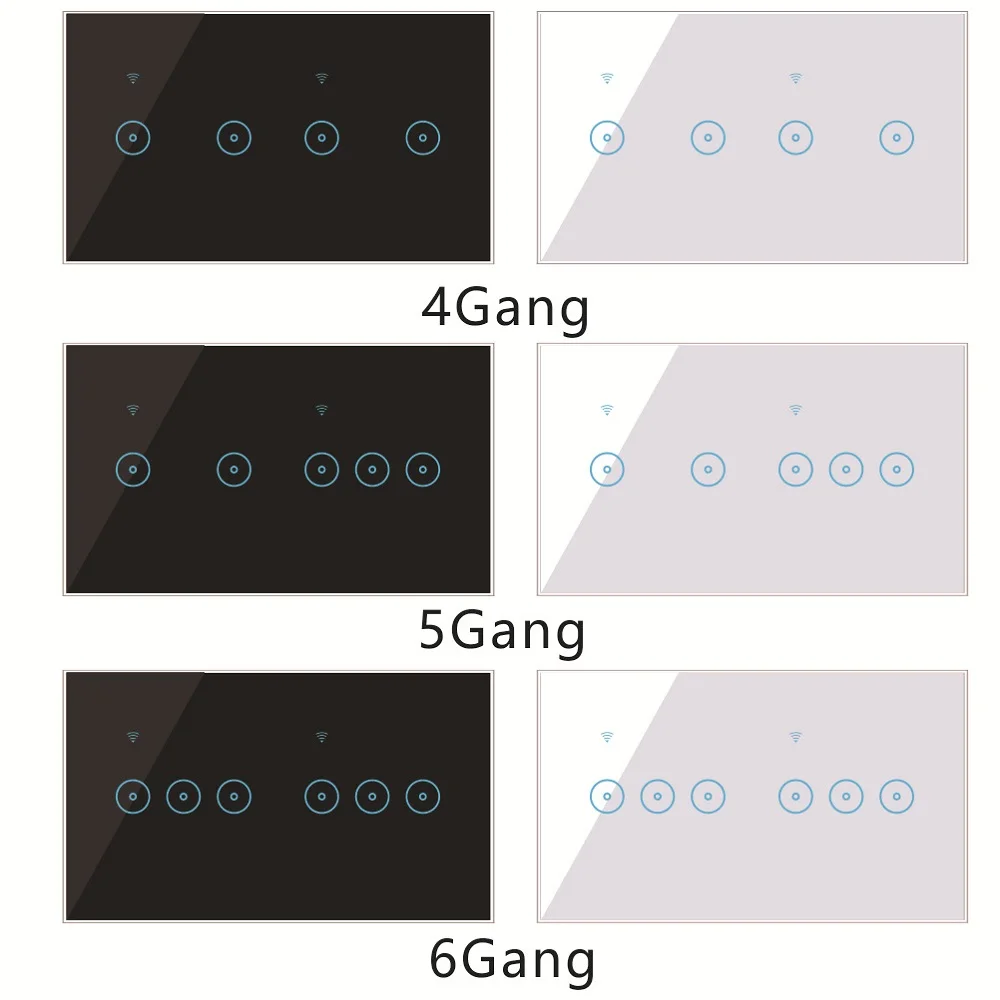 Настенный сенсорный выключатель Tuya, умный светильник ель с Wi-Fi и роскошной стеклянной панелью, 456 клавиш, работает с Alexa и Google Home