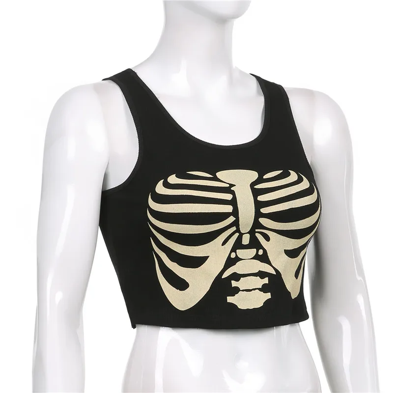 Готический скелет, пивные бокалы безрукавки для женщин Harajuku Y2k...